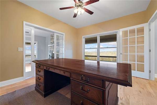 - Built-Ins, Ceiling Fans, Eat-in-Kitchen, Granite Counters, Pantry, Woodstove