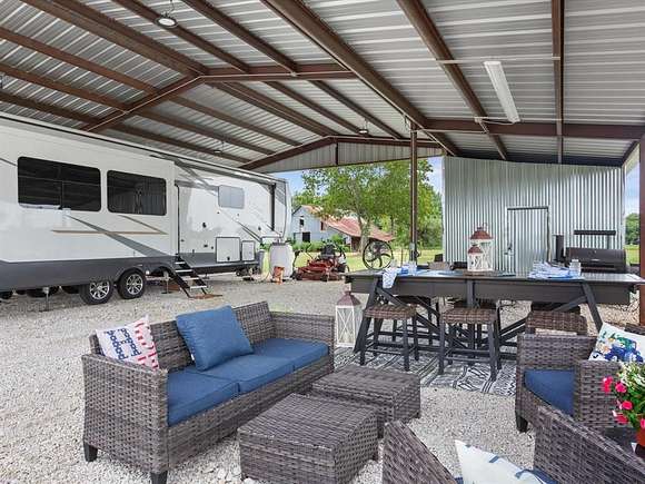 Welcome Home! Introducing a beautiful, well manicured tract of land, 12 +- acres fenced and ready to bring the kiddos and the animals! This fabulous, improved property is situated in a highly sought after area secluded in the country surrounded by other ranches! It offers fertilized coastal pastures for baling hay, 1 water wells, a water meter and electric are connected to the property . The amazing custom metal RV barn is large enough to house 2 RV's. The RV is not included at this price. Each side offers its own outdoor living space and enclosed storage space. Located near top-rated schools, shopping, and dining, this property offers the perfect blend of serene country living & convenience. The opportunities are endless for ATVing, camping, fishing and hunting for the recreational enthusiast or the rancher. Multiple round bales of hay baled yearly. This tract of land is part of a larger tract also for sale. Call For Details. Don't miss out on this amazing opportunity to make this Central Texas ranch your home!