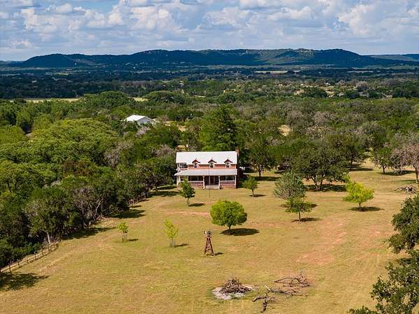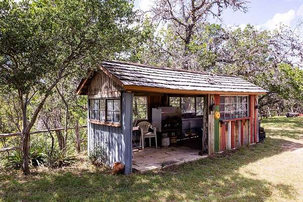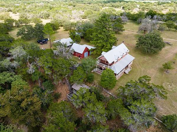 Welcome to your Medina Riverfront retreat, just minutes from the friendly town of Medina and a little over an hour from San Antonio. Set on 19.72 acres of gently rolling, well-kept land, this property features nearly 1,300 feet of beautiful Medina River frontage where you can fish, swim, or simply relax by the water. This special property has been in the same family for years, and the pride of ownership shows. It's the kind of place where weekends turn into memories-or where you might choose to settle in full-time and enjoy the quiet pace of Hill Country living. The inviting two-story home offers 1,300 square feet with two bedrooms and one bath. Inside, you'll find a cozy fireplace for cool evenings and a spacious covered porch that's perfect for gathering with friends or taking in the peaceful river views. A covered carport, workshop, and tractor barn add plenty of space for hobbies, storage, and everyday convenience.