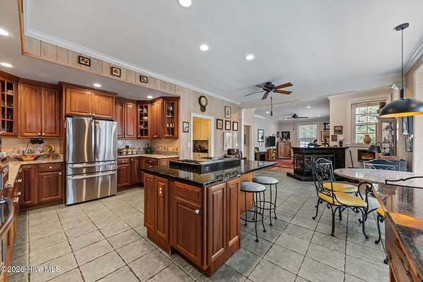 - Apt/Suite, Blinds/Shades, Bookcases, Ceiling Fan(s), Central Vacuum, Entrance Foyer, Gas Log, High Ceilings, Kitchen Island, Master Downstairs, Pantry, Solid Surface, Tray Ceiling(s), Walk-In Closet(s), Walk-In Shower, Whole-Home Generator