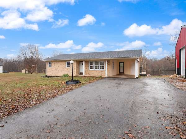 Beautifully updated brick ranch on 4 scenic acres. Enjoy the quiet of the countryside with the convenience of nearby town access. This move-in ready home features a sleek, modern interior with a spacious great room, sliding glass doors leading to a large deck, and sweeping views of Kentucky's rolling hills and mature trees. The home offers 2 bedrooms, including a large primary suite with en suite bath and a sitting room that could easily be converted into a 3rd bedroom. A nearly 1-acre portion of the property is fenced, perfect for pets or livestock. A standout feature is the brand-new oversized steel shop/garage with concrete floors and electric, complemented by a Generac 20KW whole-home generator for year-round peace of mind. With ample outdoor space, abundant wildlife, and thoughtful updates throughout, this property is the perfect blend of modern living and peaceful country charm. Don't miss your chance to own this unique property with room to grow and space to breathe.