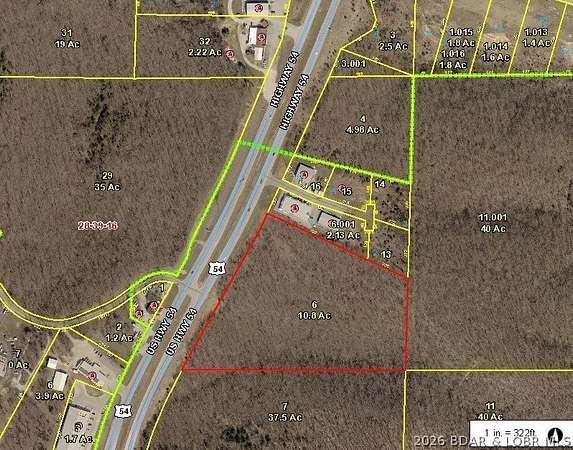 Prime Highway 54 Commercial Opportunity - Osage Beach. Outstanding opportunity to own high-visibility commercial land on Highway 54 in Osage Beach, one of the most traveled corridors at Lake of the Ozarks with approximately 20,000 vehicles passing daily. This highly visible property offers over 840 feet of Highway 54 frontage and 11.62 acres (per appraisal), providing exceptional exposure and development potential. Zoned B-2 (General Commercial) in Camden County, the property supports a wide range of commercial uses and is surrounded by established, active businesses including HMI and nearby Executive Offices, with Mi Gusto Es Mexican Restaurant located directly across the highway. The site also benefits from both eastbound and westbound access to Highway 54, making it easily accessible for customers and deliveries. Ideally positioned between Osage Beach and Camdenton, this location provides strong traffic counts, excellent visibility, and flexible development opportunities for retail, office, hospitality, or service-based businesses. Possibility of being annexed into the City limits with access to water and sewer. (Call for details) Agent owned.