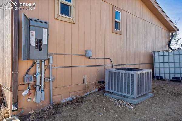 Equine Enthusiasts dream, on 6.2 acres with Front Range and Pikes Peak views. This 3-bedroom, 2-bath home (with a half-bath rough-in) offers hardwood floors, tile entry and baths, a new water heater, central AC, and a working hot tub. The energy-efficient 200-amp panel and cistern-rated washer/dryer support sustainable living. The property is ready for horses, hobby farming, and self-sufficient living with three 50-amp RV hookups, a gray-water drain, shop buildings with welding power, loafing and tack sheds, barbless and hotwire fencing, and an outlet for heating animal water tanks. Enjoy a leased propane tank for heating, a cistern fill service, septic system, rainwater catch tanks, and an asphalt driveway. Perfect for those seeking room to breathe, work, and play in a peaceful rural setting.