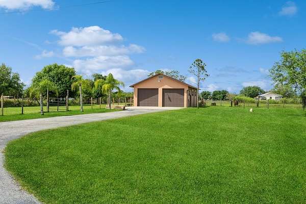 Discover the ideal blend of refined living and peaceful country charm in this beautifully maintained 3-bedroom, 2-bathroom home with a versatile den-perfectly positioned on 5 private acres in the highly desirable Buckingham area. Designed for comfort, durability, and modern ease, this property is an exceptional opportunity for those seeking a tranquil yet elevated lifestyle. Interior Features: - Open-Concept Living: Seamless flow between kitchen, living, and dining-ideal for both entertaining and everyday enjoyment. - Elegant Tile Flooring: Durable and sophisticated, flowing throughout the entire home. - Wood-burning fireplace: Adds warmth and ambiance, perfect for cozy evenings. - Whole-House Reverse Osmosis Water System: Clean, high-quality water for everyday wellness. - Impact Windows & New Roof: Long-lasting protection and peace of mind. - Updated Electrical Panel: A modern must-have for safe and efficient living. Outdoor Features: Tailored for agricultural enthusiasts and car lovers, this property offers a rare combination of usable land and versatile amenities: - Fenced & Cross-Fenced Property: Ready for farming, livestock, or other agricultural pursuits. - Private Pond & Mature Fruit Trees: Enjoy the serenity and bounty of your own land. - Pool & Spa Retreat: A secluded space for sun-soaked afternoons or peaceful evening dips. - Spacious Pole Barn & Chicken Coop: Perfect for small-scale agricultural projects or storage. - 1,200 Sq. Ft. Workshop with Paint Booth: A dream setup for car collectors, hobbyists, or entrepreneurs seeking space for tools, restoration, or fabrication projects. Well-suited for hobby farms, vehicle collectors, tradespeople, or those looking to cultivate the land for a variety of agricultural purposes. Live the Dream: Set in one of Southwest Florida's most sought-after acreage communities, this Buckingham gem offers the rare chance to enjoy privacy, space, and flexibility-without sacrificing modern comforts. Whether you're dreaming of country mornings with coffee by the pond or late afternoons tinkering in the workshop, this home delivers the lifestyle you've been waiting for.