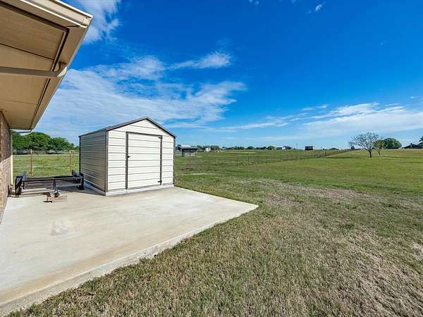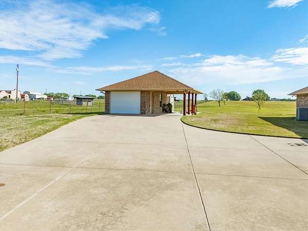 Discover the perfect blend of peaceful country living and everyday convenience on this beautiful 12-acre property in Ennis ISD. This spacious 4-bedroom, 2-bath home offers room to spread out with two comfortable living areas, ideal for entertaining or relaxing with family. The oversized primary suite is a true retreat, featuring dual closets, separate vanities, and a large jetted tub for unwinding at the end of the day. One secondary bedroom includes built-in cabinetry and a desk—perfect for a home office, study space, or hobby room. The home features a cozy Heatilator fireplace, adding warmth and charm to the main living space. A 2-car attached garage provides convenience, while the detached 1-car garage with an attached carport—designed to match the home—offers additional storage and parking flexibility. Step out onto the oversized covered patio and enjoy wide-open Texas skies, a scenic pond, and growing pecan trees that provide the ag exemption. The property is fully fenced with an electric gate, providing both privacy and security. This property has it all. Schedule your showing today.