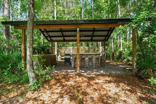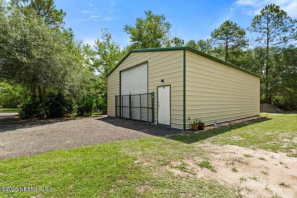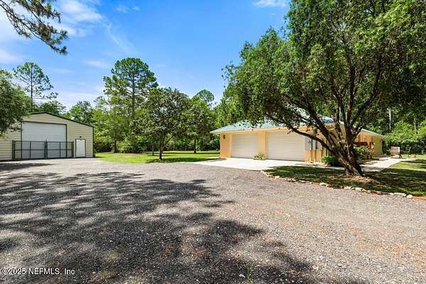 Welcome to your private country retreat! OPEN HOUSE SUNDAY NOV 9TH 1:00-3:00. This custom built home offers peace and tranquility on 3.75 acres (acreage includes a 1.25 acre parcel that is now vacant but is developed with water, electric, septic). Enjoy the scenic drive to your secluded property, featuring 1560 sq ft of comfortable living space with 2 bedrooms and 2 bathrooms. Built with concrete block/stucco and topped with a durable metal roof, this home is designed for lasting quality. Inside you'll find an inviting floor plan perfect for entertaining. Cozy up by the gas fireplace on cooler evenings. The split design ensures privacy and comfort. The primary suite offers walk-in closet and spacious bathroom with large shower and double vanities. Outdoor living includes a covered outdoor kitchen, outdoor shower, and garden area with water. Additional amenities are an oversized 2-car garage, 200 AMP panel and 30 amp outlet for generator or RV.... For hobbyists and professionals alike, the property includes a spacious 30 x 40 workshop, equipped with a 200 AMP Panel, dedicated 20 AMP circuits throughout, 10 x 12 roll-up door and a security gate so your furbabies can keep you company. The workshop is also wired for a small kitchen and piped for a bathroom. 6672 Crooked Creek Lane presents a unique opportunity to own a secluded country property with modern amenities, a functional workshop and lots of possibilities. Don't miss your opportunity to experience the best of county living!