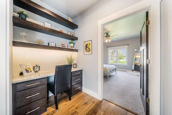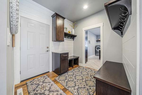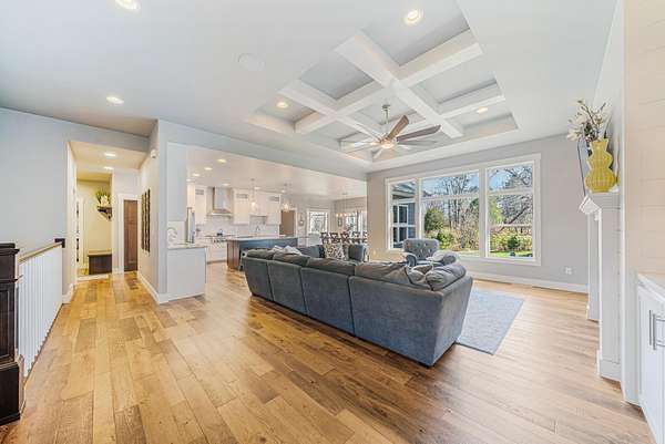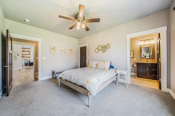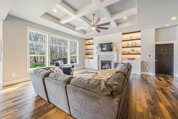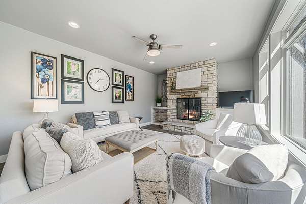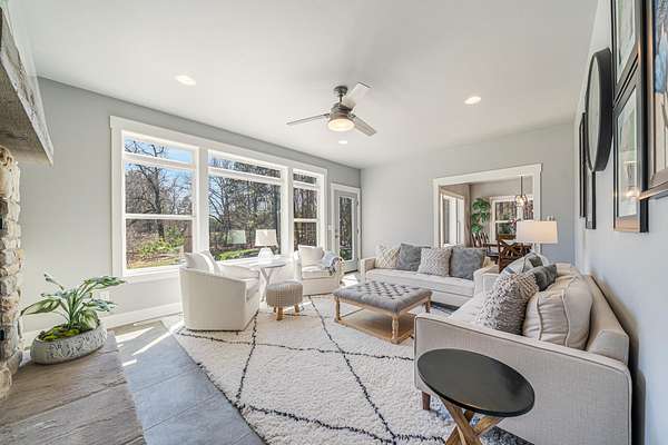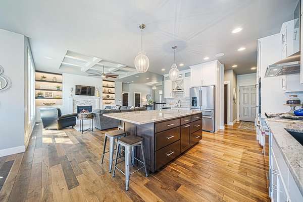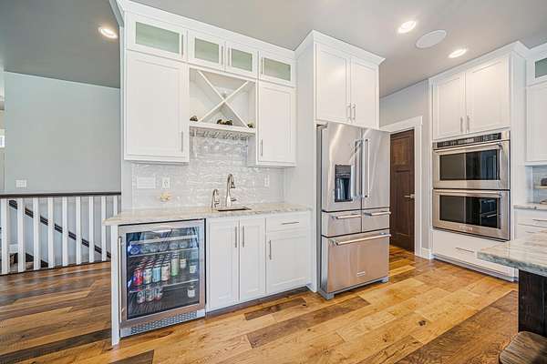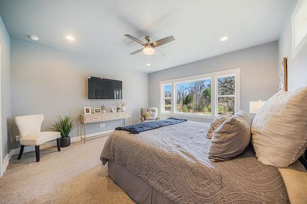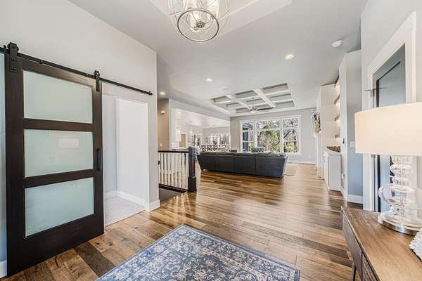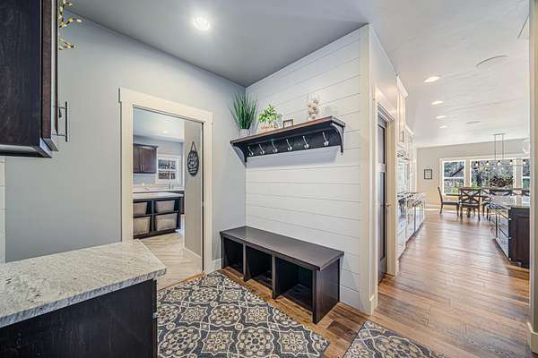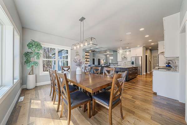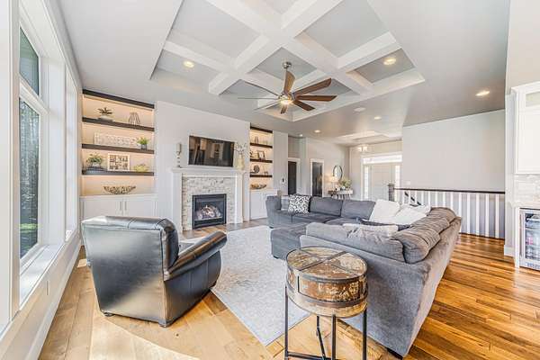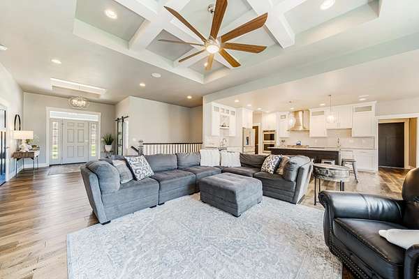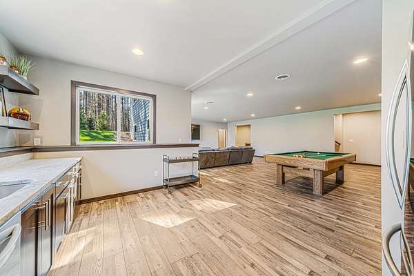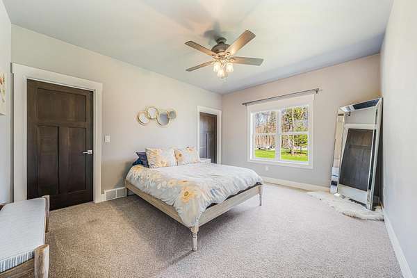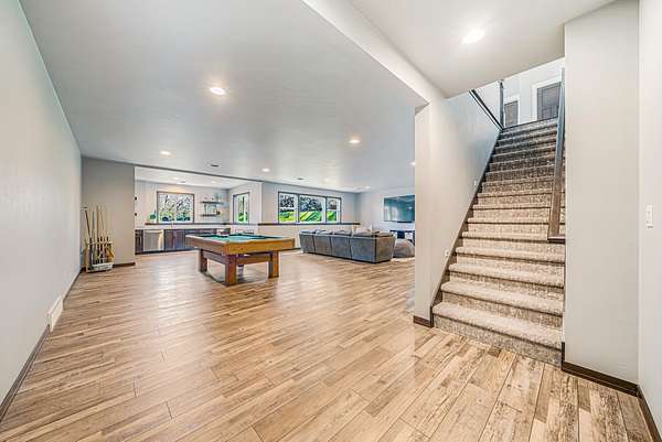 Gorgeous luxury home set on 1.5 acres in a peaceful rural setting. Enjoy your own backyard oasis featuring a scenic pond, patio, and firepit, perfect for relaxing or entertaining. The open concept main level offers a spacious living room, kitchen with a walk in pantry, and dining area. Just off the dining space, the hearth room showcases a wood burning fireplace and stunning backyard views. The lower level is designed for entertaining with a large rec room, wet bar, two bedrooms, and a full bathroom. The primary suite features an ensuite bathroom with a walk in shower, soaking tub, and a generous walk in closet. Two additional bedrooms and office space are located on the main level. The spacious laundry room off the mudroom adds everyday convenience. Smart Hardboard Siding.