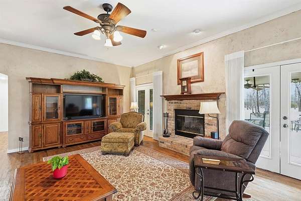 Discover serene rural living at its finest in this expansive Union Valley property, a perfect convergence of country charm and modern convenience. This picturesque estate sprawls across 5 acres, featuring a stunning 5-bedroom, 3.5-bath residence with a spacious 3-car garage. Upstairs is large enough to have the bedroom, an office, or large game room. Step inside and be captivated by the harmonious blend of rustic and contemporary elements. The open-concept living areas are bathed in natural light, enhancing the warmth of rich wood accents and high ceilings. The spacious kitchen features eat-in area, granite counters, stainless appliances, plenty of specialty cabinets, and an island ideal for entertaining. The primary suite is a sanctuary of relaxation, complete with a luxurious ensuite featuring dual vanities, a soaking tub, and a walk-in shower. Four additional bedrooms offer ample space for guests, and the 3.5 baths ensure comfort and privacy for everyone. Just repainted kitchen, halls and laundry room. Rest of house repainted in 2024 and carpet installed in 2024. Outside, the black piped fenced property transforms into an inviting, relaxing, peaceful paradise with trees everywhere, 2 patios with 1 covered and pond with fountain and deck area to enjoy. The expansive land grants stunning views and endless opportunities for outdoor activities. Whether you envision a garden retreat or a lively farm stay, this property can accommodate your dreams. The 3-car garage provides ample space for vehicles and storage of tools and equipment and 110 plugs every 4 feet. 12 vehicles can park on the hard surface and rocked area. There is also an insulated and climate- controlled attic for tons of storage. There is a Wi-Fi tower on side of house. This gem seamlessly marries the tranquility of country life with refined modernity. Enjoy the peace of wide-open spaces with the convenience of being just a stone's throw from local amenities.