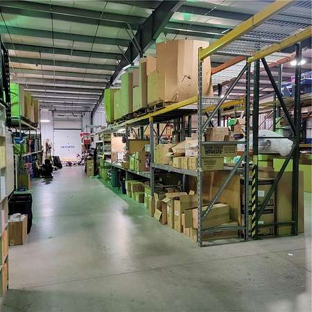 The layout includes a combination of retail/showroom areas, private offices, workrooms, conference space, and warehouse facilities, including approximately 18,000 square feet of warehouse space. The warehouse section offers up to 16-foot clear ceiling heights, multiple docks and drive-in doors (including 12’ x 14’ and 8’ x 10’ doors), and a covered loading docks, supporting efficient loading and distribution operations.