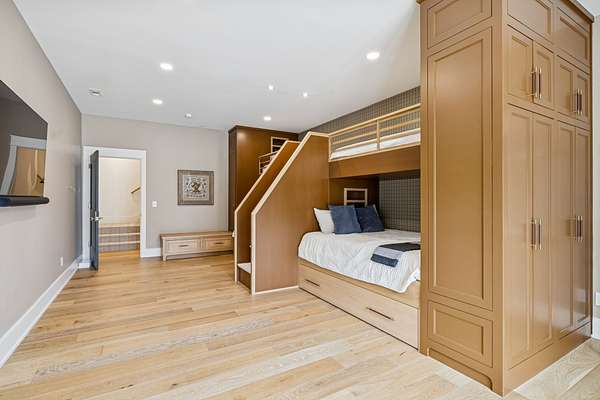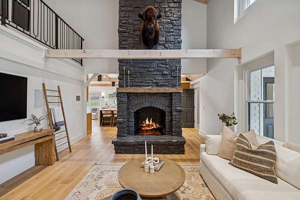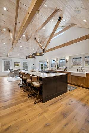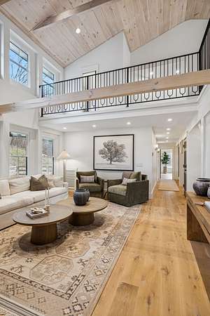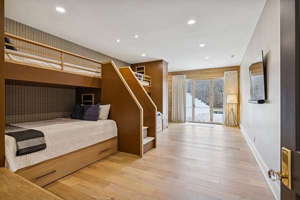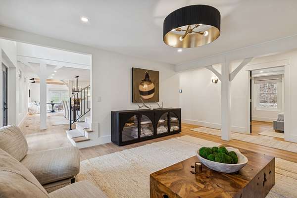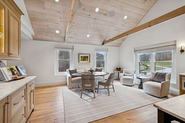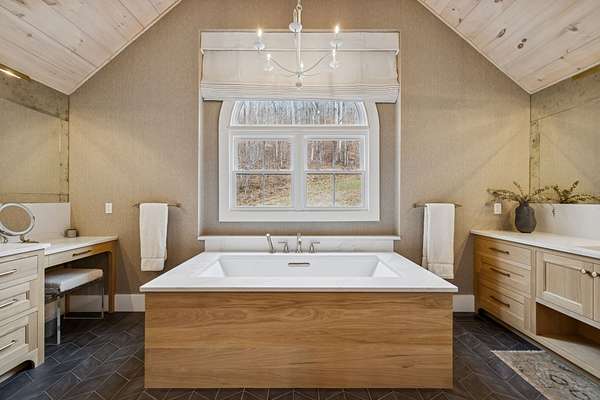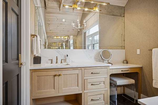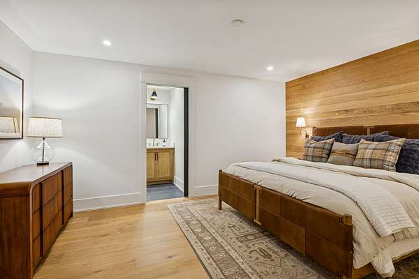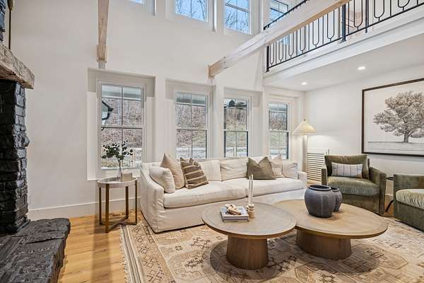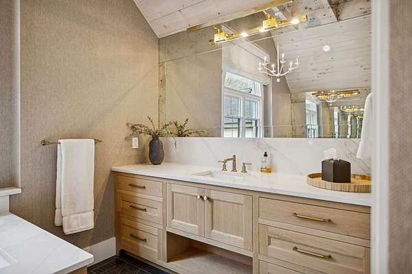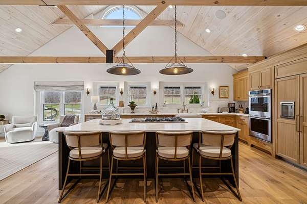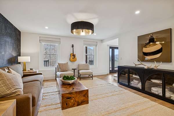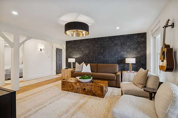 Anchoring the property, the 6,000 sq. ft. main residence is a Kathryn Zelenik Designs renovated masterpiece, offering 5 bedrooms, 5.5 baths, wide-plank white oak floors, custom cabinetry, and a light-filled master suite with sweeping views. With sleeping accommodations for up to 20, it effortlessly blends scale, sophistication, and comfort, creating the ideal setting for hosting guests or retreating with family.