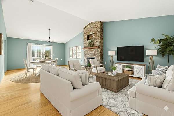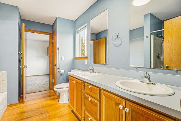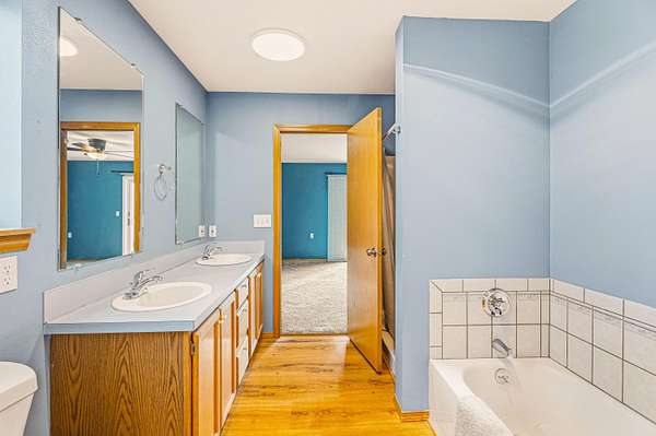- Breakfast Bar, Ceiling Fan(s), Double Vanity, Kitchen Island, Laminate Counters, Linen Closet, Open Floorplan, Pantry, Shower/Tub Combo, Soaking Tub, Vaulted Ceiling(s), Walk-In Closet(s)