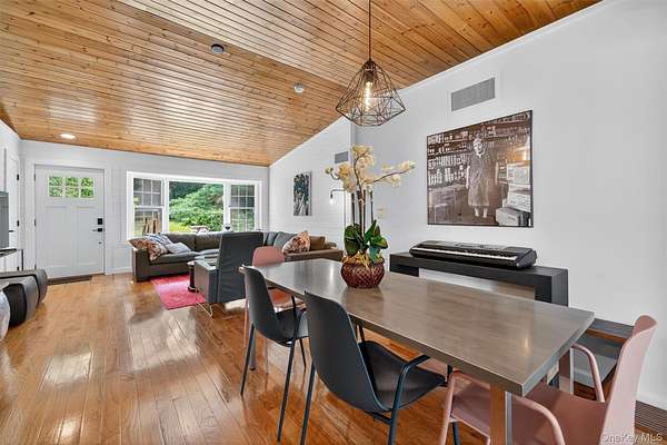 Renovated Ranch Retreat with Acreage & Tranquil Setting. Perfect primary home, weekend retreat, and Airbnb investment! Tucked away on a quiet country road, this renovated and updated 3BR/2BA custom ranch rests on 6.68 serene acres, where the sounds of birdsong and the gentle flow toward Hankins Pond set the tone for peaceful living. Designed for comfort and convenience, the easy one-level floor plan welcomes you into a modern fitted kitchen with a floating, versatile island-perfect for prep work or casual dining-opening seamlessly to the dining and living room. Hardwood floors and warm tongue-and-groove wood accents create an inviting, warm charm. Three cozy, carpeted bedrooms are heated with efficient forced warm air fueled by clean propane. The light-filled sunroom off the dining room offers a sunny spot to relax year-round, while the open back deck invites barbecues and gatherings, framed by terraced stone walls. A dedicated laundry room and an attached two-car garage provide practical storage and easy access. The property's gently rolling terrain and wooded privacy make it a perfect escape, yet you're just 5 minutes from downtown Narrowsburg, where you can enjoy fine dining, boutique shopping, live entertainment, cultural events, and outdoor adventures on the Delaware River-kayaking, fishing, and swimming included. All this, just 2 hours from NYC, makes this home ideal for year-round living or a weekend retreat. If you're looking for a property that blends modern updates, a spacious natural setting, and proximity to one of the Catskills' most charming river towns, this ranch retreat is ready to welcome you home.