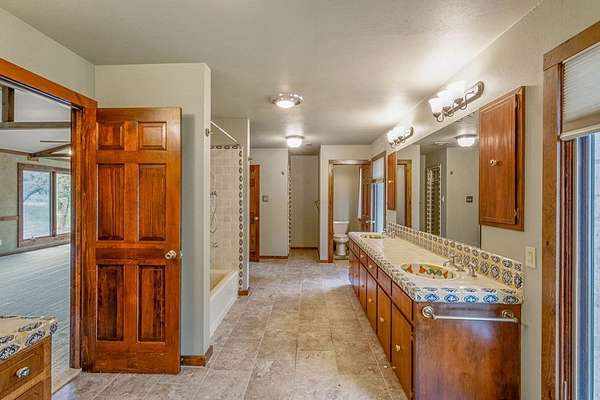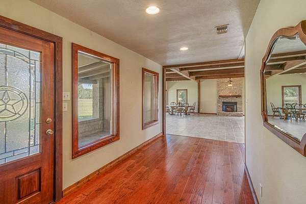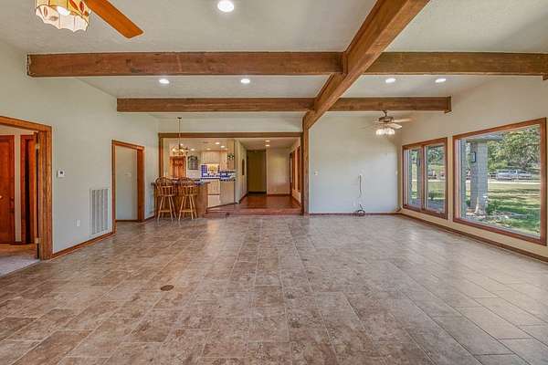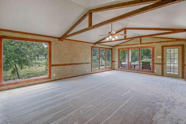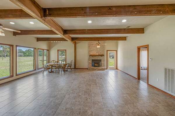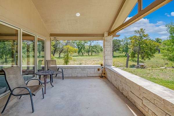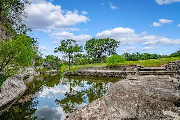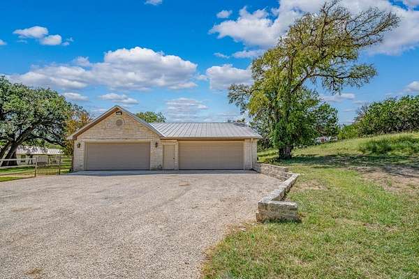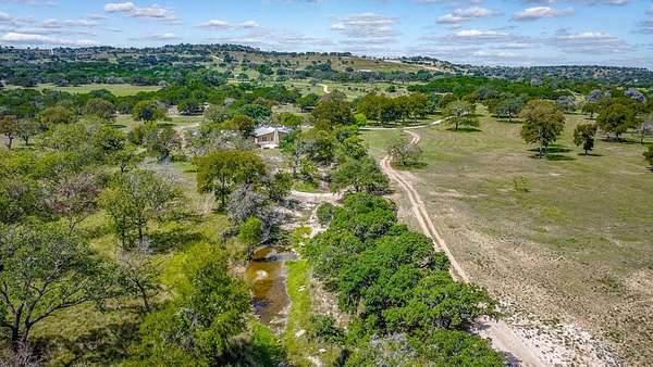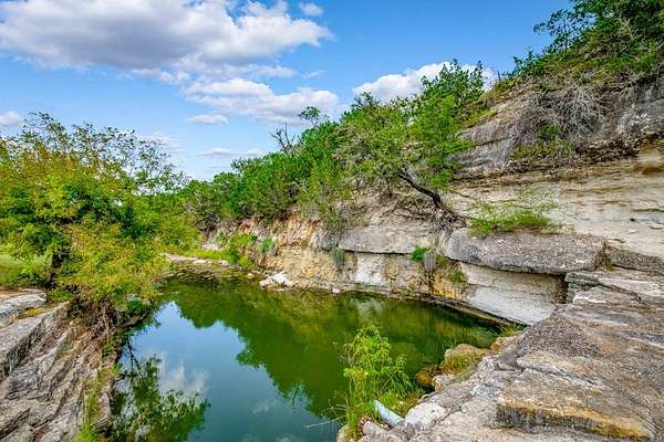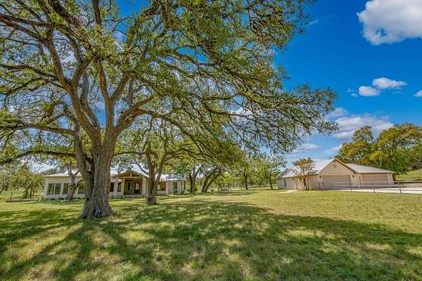 A beautiful property with over 2,500' of both sides of Elm Creek and boarders on a private lake. The lovely rock home is nestled along the creek bank, offering a tranquil setting. The 4B 4B house offers a large kitchen with lots of storage, Mexican tile counters and large island. It opens up into a large great room, with a huge rock fireplace. The master suite offers views over the creek, large closets, huge master bathroom, vaulted ceilings & a private porch. The house offers, large windows providing tons of natural light, walk-in closets, a metal roof, and a nice dedicated office. The large detached 4 car garage offers an efficiency apartment that could be used for guests, as an office, or just about anything else. Elm Creek is dammed up on the property by a rock and concrete dam. Around the dam, there is extensive rock work that has been done that provides a wonderful place to relax and enjoy nature. The ranch has over 300' of frontage on a private 10 acre lake. A great place to swim and do a little fishing. The land has a nice blend of open areas and heavy cover, with oak, cedar elm & pecan trees. Great for horses & livestock. Axis and whitetail offer year round hunting.