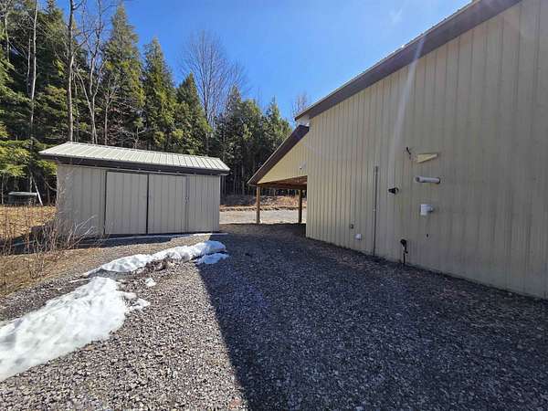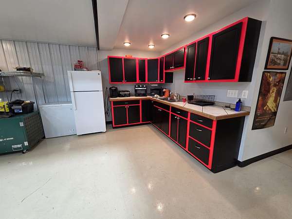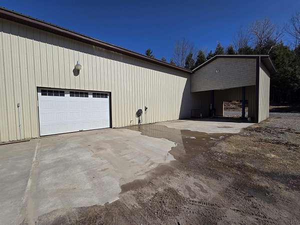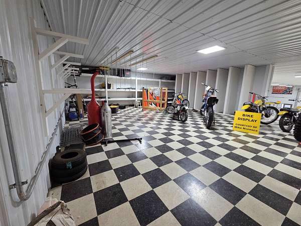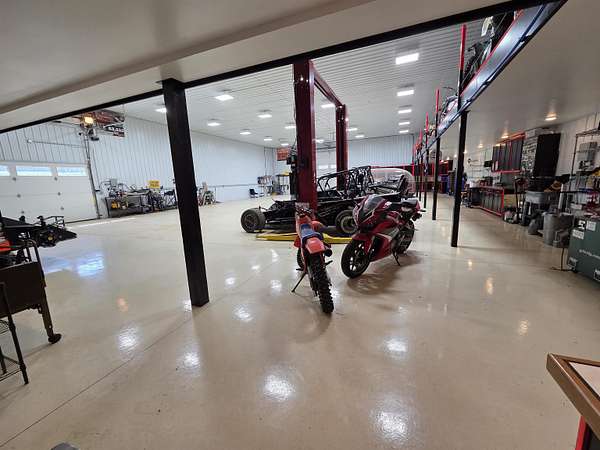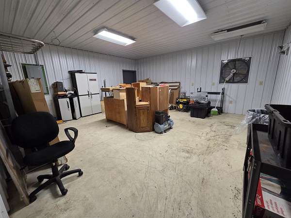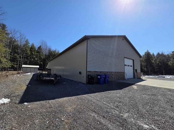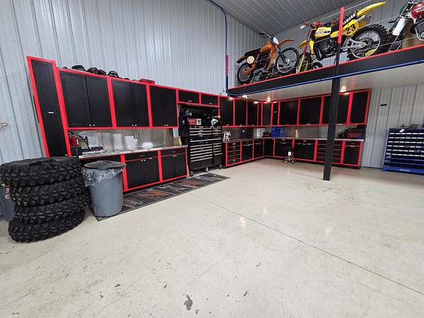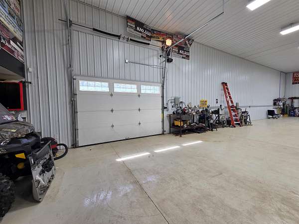 BARNDOMINIUM? Storage Facility? Dream Shop? Investment Opportunity? The possibilities here are truly endless. This impressive 6,000 sq ft main-level space, plus an additional 2,000 sq ft loft, offers unmatched flexibility for residential, commercial, or recreational use. Built for performance and efficiency, the property features in-floor heat, spray foam insulation (including R54 in the ceiling), and a comprehensive security system. The expansive open garage space includes built-in cabinetry, stainless steel counters, a sink, and a kitchenette—perfect for workspace or entertaining. Additional highlights include a 14 ft overhead door, private office, bedroom, full bathroom, and a dedicated “tire room” for added storage or specialty use. Outside, you’ll find a 16’ x 100’ concrete RV pad with its own septic system, plus an additional 40 ft of crushed stone for even more parking or storage flexibility. The upstairs loft is currently utilized as a bike display area but offers incredible potential to be finished or expanded into additional living space. Whether you’re looking to create a barndominium, business hub, or multi-use investment property—this one-of-a-kind opportunity delivers.