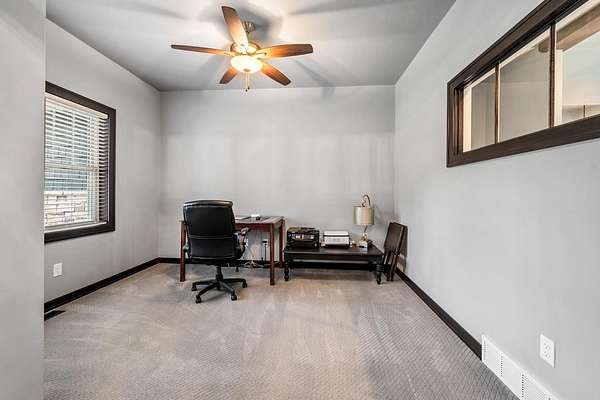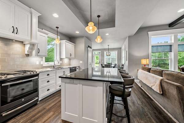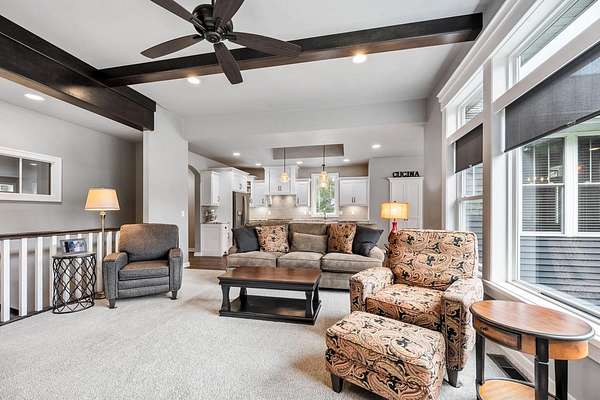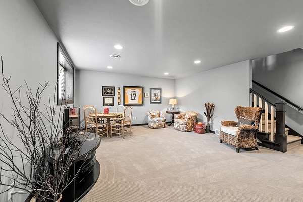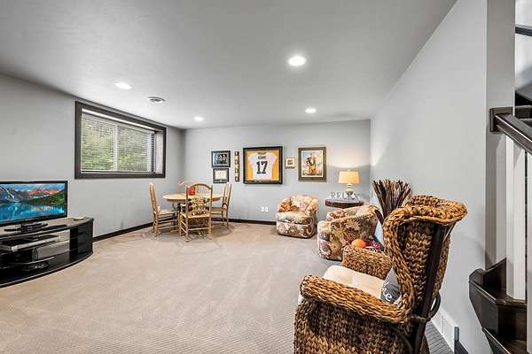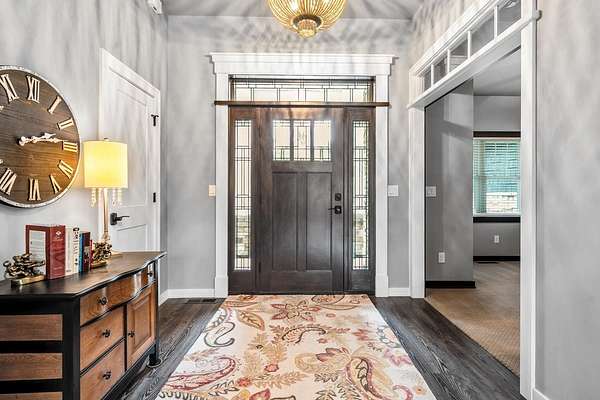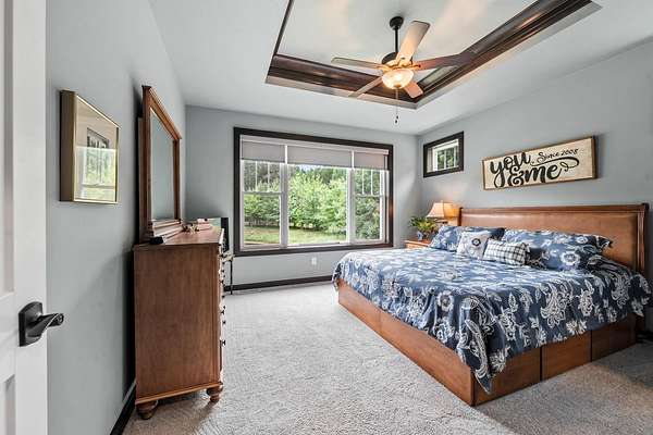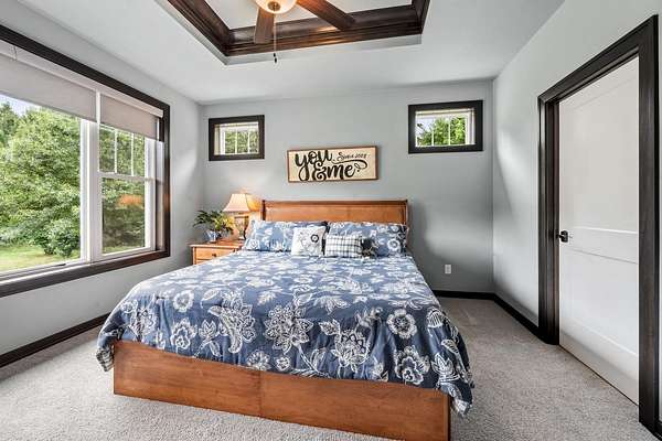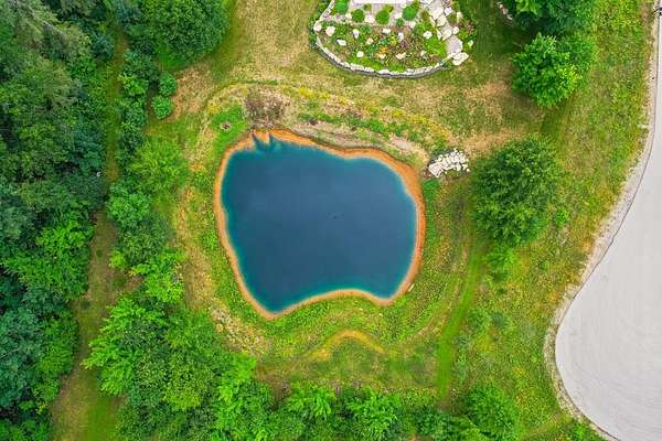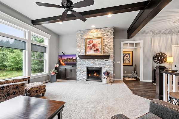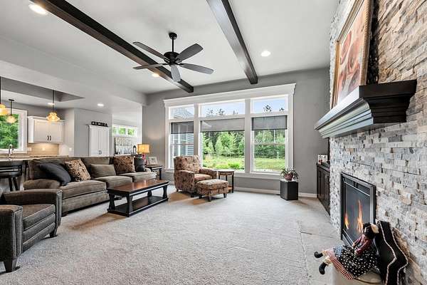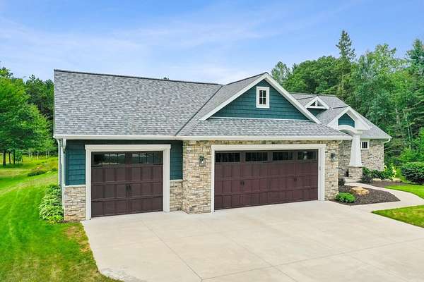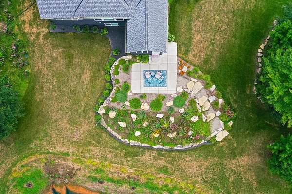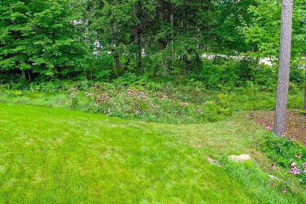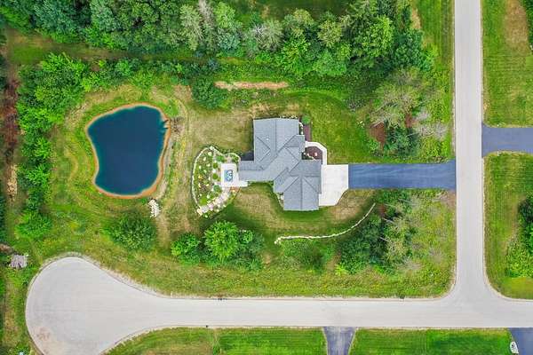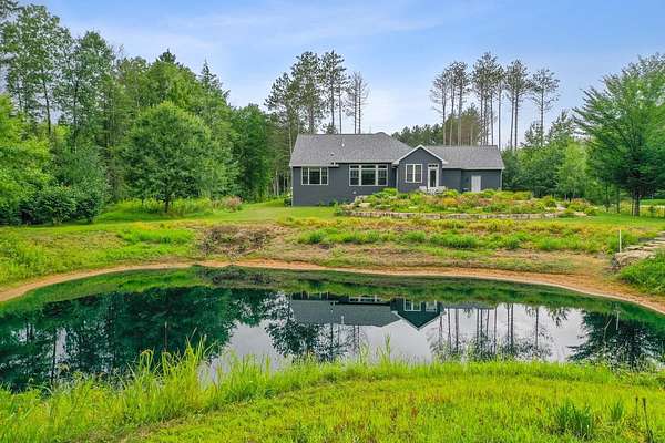 Set atop a 1.5 ac country corner lot w/ nearly a half acre of perennial wildflowers, this 3 bdrm custom-built former showcase home greets w/ 10' exposed beam ceiling, natural stone FP, and large windows overlooking a scenic pvt pond! Fully-equipped kitchen w/ granite, island w/ seating, walk-in pantry, & subway tile backsplash. Dining opens to patio & gorgeous terraced landscaping to water's edge. Primary BR w/ picture window, full dual-vanity en-suite w/ luxury tile shower & walk-in closet. Flexible 2nd BR currently used as office space. 1st flr laundry w/ included W+D, half-bath & mudroom conveniently located at entry to 3-stall garage w/ bsmt access. LL adds 525+sqft composed of a fam-rm, 3rd BR w/ walk-in & full bath with 4th bdrm easily achieved. Septic-rated for 4 bd. Must-see home!