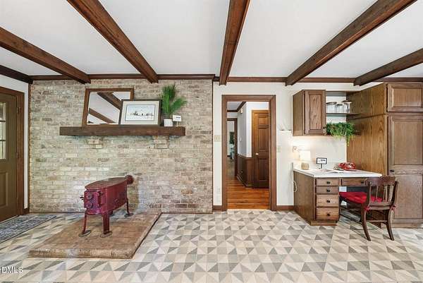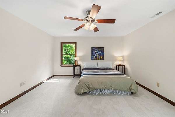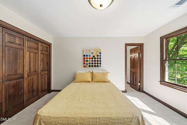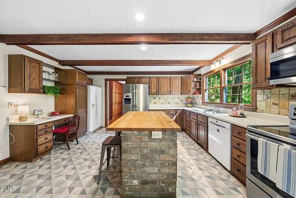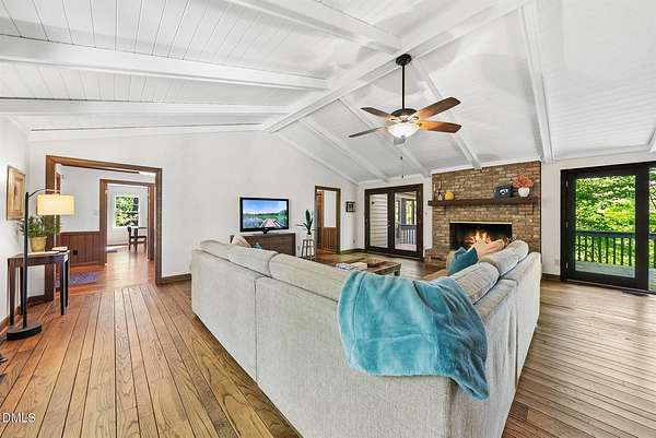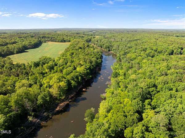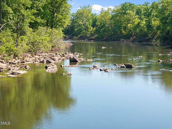 RARE opportunity to own 10 private acres along the HAW RIVER in Chapel Hill. Set high above the river on a steep bank, this wooded retreat offers an uncommon level of seclusion and takes full advantage of the views and the constant backdrop of moving water. Unwind on the screened porch, do morning yoga on one of many decks, or sit and do nothing but listen and watch the wildlife all around you. A gentle slope from the side yard takes you down, through the woods, to the banks of the river. Generous rock outcroppings tempt you scramble around, or provide a restful spot to sit and meditate and maybe catch site of a bald eagle. The whole setting invites you to take in the natural world and escape the news and the typical drama of daily life. You'll be sharing stories about the family of deer that you see each morning, the birds of prey that frequent the trees and river, the variety of bird song, and the hoots that you hear at night. Speaking of night, you'll remember what it's like to see stars and trust your senses. You'll become attuned to the rhythm of the cicadas and pretty soon you'll establish the slower pace of life that you've been craving for so long. Inside, the home welcomes you with a warm, relaxed, farmhouse feel. The brick fireplace anchors the oversized living room and the cottage style eat-in kitchen features a butcher block island and flows nicely to the screened porch. Upstairs, the primary suite overlooks the river and opens to its own expansive tree-house-like deck. Two additional bedrooms share a convenient Jack-and-Jill bath. You've got 2 options for flex space: A main-level room with built-ins could be a private office or quiet den. A separate bonus room over the garage provides flexibility for hobbies, guests, or play room. Freshly painted, new carpet, refreshed hardwoods and new light fixtures. Shown by appointment only. Driveway is gated.