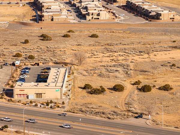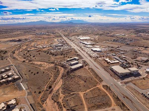 This prime 3.76-acre vacant commercial parcel at 6680 Cerrillos Road offers a unique investment opportunity in the heart of Santa Fe's bustling automotive retail hub, home to a cluster of 12 dealerships. This property is positioned just north of the Walmart Superstore and Presbyterian Hospital and stands out for its strategic location. While some of the land falls within a floodplain, the parcel has approximately 1.5 acres of buildable terrain. This opens up the potential for constructing a two-story structure exceeding 20,000 square feet, with innovative terrain management strategies enabling the second level to align with Cerrillos Road's elevation. Detailed sketches, including potential site layouts, elevation, and a comprehensive site study, are available upon request, showcasing solutions to maximize the site's utility despite its floodplain impact. Located merely two lots north of the CarMax Dealership and directly opposite the Dodge, Jeep, and Subaru dealerships, the property is at the epicenter of automotive retail. The surrounding area is witnessing a commercial, apartment, and residential development surge, further enhancing the site's appeal. The property benefits from high traffic volumes on Cerrillos Road, thanks to its proximity to significant intersections like Jaguar Drive, Governor Miles to the north, Tierra Contenta Drive, and Las Solaras Drive to the south. As one of the last undeveloped parcels in its rapidly expanding commercial and residential subdistricts, this offering represents a chance for investors, developers, or retailers to acquire one of Santa Fe's most desirable locations In the path of significant growth and development potential.