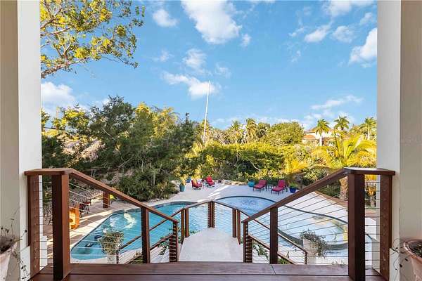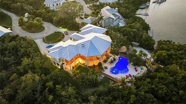 Welcome to a once-in-a-generation private waterfront family compound on the coveted north end of Longboat Key—an extraordinary 2.4 acre, fully gated coastal estate that blends architectural mastery, resort-level amenities, and rare development potential. Encompassing four buildable parcels (500, 510, 520 Nomas Way and 6680 Gulf of Mexico Drive), this legacy property offers unparalleled privacy, flexibility, and long-term value. From the moment you arrive, illuminated by classic Bevelo gas lanterns, the estate unfolds with intention and elegance. The custom-designed main residence is complemented by a separate 3-bedroom, 2-bath, 1,850-sq-ft guest home with a detached garage—perfect for extended family, guests, or staff accommodations. Every detail reflects thoughtful craftsmanship, from the 900-bottle red cedar wine cellar to the oversized custom wood-burning fireplace with gas option. Designed for both grand entertaining and everyday indulgence, the chef’s kitchen features natural gas cooking with Wolf and Sub-Zero appliances, while state-of-the-art home automation and whole-home sound elevate daily living. Step outside to a true private resort: a 15,000-gallon free-form pool with a 1,000-gallon spa, heating and chilling via reverse heat pump and natural gas, and an expansive custom tiki pavilion built for unforgettable gatherings. For boating enthusiasts, this estate is unmatched—165 feet of frontage on Bishops Bayou, two docks, three boat lifts, and deep-water, direct Intracoastal access. Across Gulf of Mexico Drive, deeded private beach access makes turquoise waters and nightly sunsets a daily ritual. Car collectors and hobbyists will appreciate six garages, including an automotive lift, plus a 50’ x 24’ covered pole barn for additional storage. Peace of mind is absolute with a 24-camera security system, safe room, elevator, and a 60kW natural gas generator powering the entire estate during any weather event. Fully fenced and gated, this property offers complete privacy without compromise. This is more than a home—it is a coastal masterpiece, a designer’s dream that exudes sophistication, balance, and harmony. An irreplaceable opportunity to own one of Longboat Key’s most remarkable waterfront estates, where luxury, security, and lifestyle converge in perfect alignment.