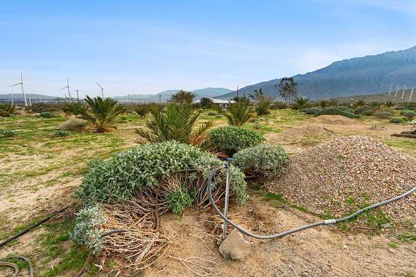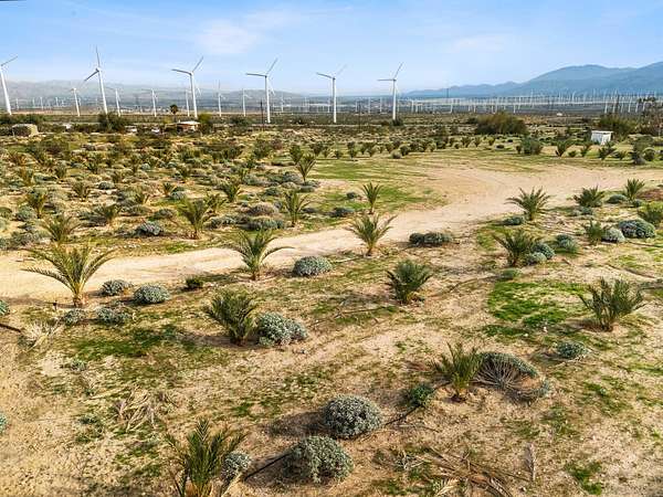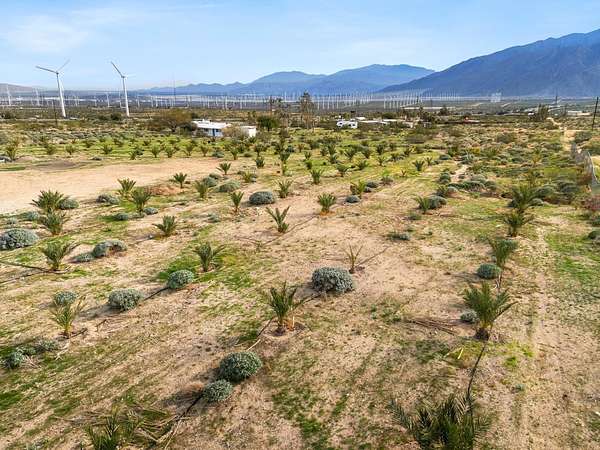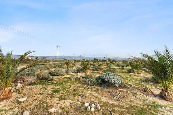Rare opportunity to own approximately 2.5 acres of usable vacant land in Whitewater, CA, offering wide-open desert views and a peaceful, private setting. The property is fully fenced and features approximately 240 date palm trees planted throughout the parcel. The palms are young and not yet producing dates, but they are established date palm trees that add long-term agricultural and aesthetic potential. Water is already connected on the property, and power lines are located nearby, allowing a future owner to explore adding electrical service (buyer to verify availability and costs). The land's layout and open space make it well suited for a variety of uses, including a private retreat, agricultural use, nursery operation, or long-term investment hold. One image included in the marketing materials is an AI-generated conceptual rendering showing a potential retreat-style improvement for visualization purposes only. No structures currently exist on the property, and the image does not represent approved plans or existing improvements. Enjoy scenic mountain views, surrounding desert landscape, and proximity to the wind farm area while maintaining privacy and open space. Buyer to verify zoning, land use, utilities, access, and development feasibility to their satisfaction.