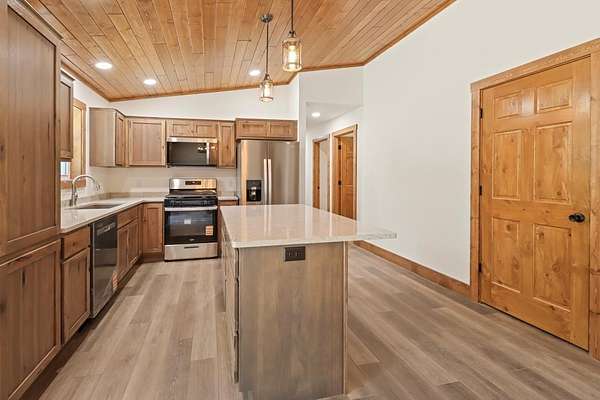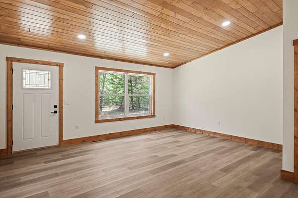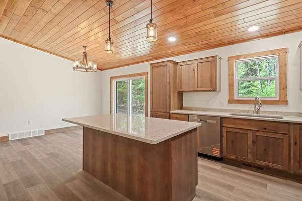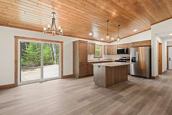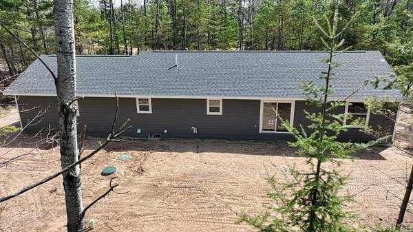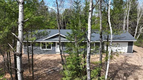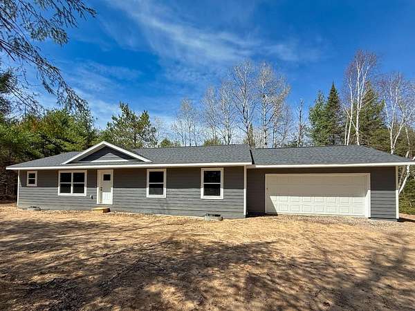 Here's your opportunity for a brand new home! This new construction ranch home sits on a beautiful wooded 2.5 acre lot in Three Lakes. This contemporary open concept design encompasses a split floor plan with three bedrooms, two baths, a full basement and attached 2 car garage. The knotty pine vaulted ceiling and neutral color palate tastefully bring a comfortable flow to the interior. The kitchen design includes quartz counters and roomy island, hickory cabinetry and stainless steel appliance package. The primary bedroom has attached private bath, full basement has another bath roughed in. The property is nearby to town, ATV and snowmobile trails. Everything here is new, no work to be done and move-in ready!