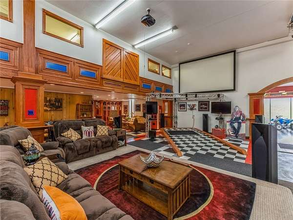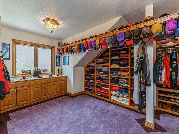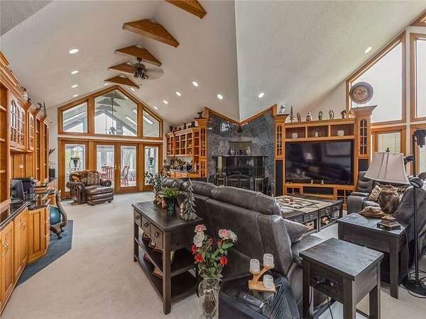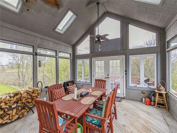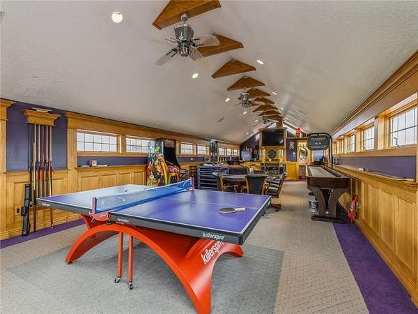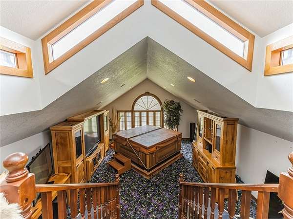 1 of a kind Custom Home on 16A in prime, secluded Ankeny location. Minutes from about anything. 40 Car shop / garage (60X100X16 high) with a 10' high by 16' wide and a 14' X 16' commercial overhead doors, radiant heat, RV electrical hookup, full kitchen and bar area in shop, theater area, and an impressive showroom. 5650 Sf of ultimate mancave / shop space to appreciate and enjoy. The main living area on the 2nd floor is open and impressive with cathedral ceilings and large fireplace, formal dining, gourmet kitchen with breakfast bar and a royal owners suite with fireplace. The 3rd floor has an awesome rec room with fireplace and panoramic views of the pond. Additional features include sports court, sunroom and fitness room. Well built with Blue Maxx ICF wall system for superior strength with added insulation qualities. Standing seam metal roof. ADT security system. Your private retreat down a long lit 2 lane driveway just 5 minutes to corporate woods Ankeny exit. An opportunity to own this impressive and unique property for a fraction of the cost to build. Your Dream Barndominium. Only shown to identified pre-approved buyers! Do not go down the private drive without an appointment. Take a virtual tour of the home with my team's 3D virtual tour from the attached link.