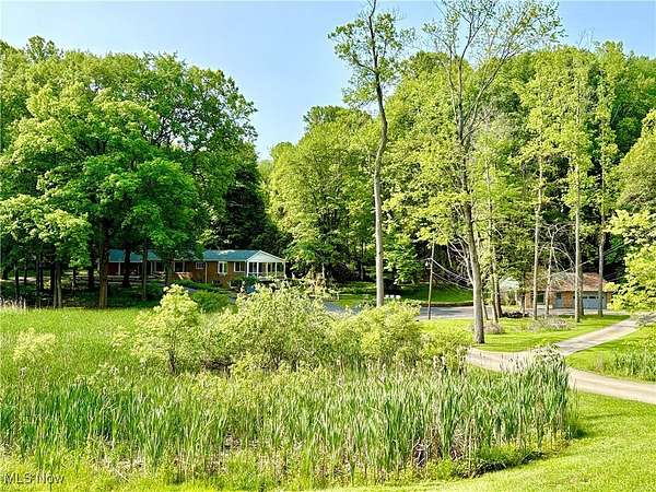 Private, one-of-a-kind, hidden gem w majestic views & unique property features available in sought after Brecksville. As you come down the private drive & transcend the hillside, stop & take in the views--completely private nature lovers dream w wetlands pond, house nestled on the hill, multiple patio areas & greenhouse/out building/artist studio. It's like having your own private retreat--WOW! Start at the home by seeing the new front porch and imagine your days relaxing while overlooking the wetlands. AMAZING! You enter into the open concept main area with classic slate floor foyer and vaulted ceiling family room w wood beam ceiling, stone fireplace & panoramic windows overlooking the wetlands-EYE CANDY! The large master suite is to the left w vaulted ceiling & new waterproof wet-bathroom w massive walk-in shower & gorgeous vanity area--SO NICE! To the right of the family room is the open concept kitchen & dining w slider to a screen in porch overlooking the greenhouse area--BEAUTIFUL! One bedroom w new carpet is off the dining area and has access to the side patio. The other bedroom w new carpet and full bath are off a lil hall off the family room--unique layout great for guests and/or separation. Head downstairs and check out the spacious rec room, 2 storage rooms, full bath and mud room that leads to the oversized 2 car garage w remote. Outside you can venture past the hillside with cascading slate paths, slate patio sitting area and toward the outbuilding. This outbuilding can be anything! Greenhouse on one side, previous ceramic and art studio in the middle and massive workshop/boat storage on the other side. Let your imagination run wild w all the possibilities of this private sanctuary. Absolutely nothing else like it! Roof '25. AC '18. Furnace '13. Septic serviced '24. All appliances stay. Estate & selling as is. Brecksville-Broadview Heights award winning schools. Easy highway access to Cleveland and Akron.