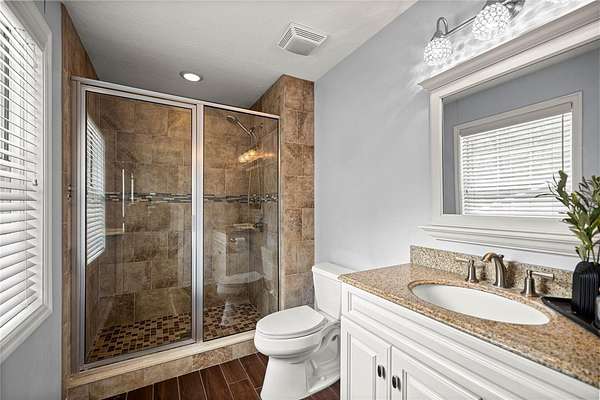 - Built-In Features, Ceiling Fans(s), Eat-In Kitchen, High Ceilings, Primary Bedroom Main Floor, Stone Counters, Walk-In Closet(s)