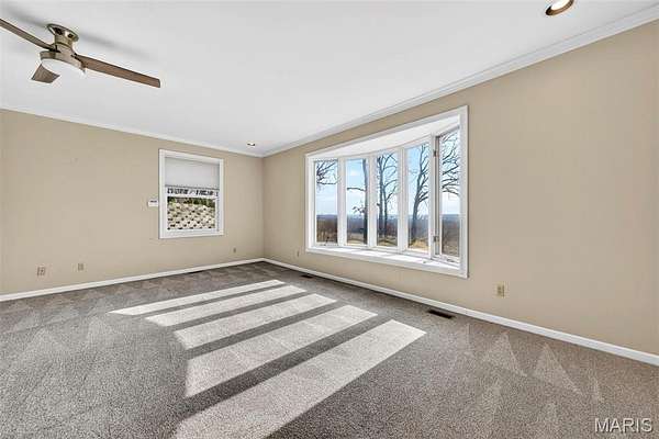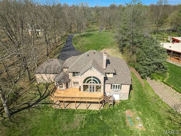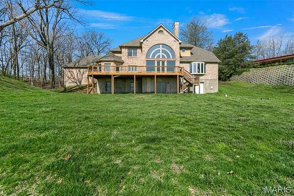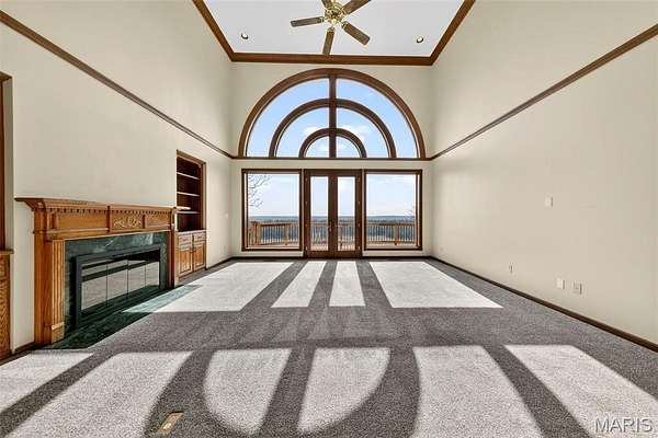 Stunning home situated on 3 acres offering beautiful views from back bluffs down to the river and surrounding area. From the moment you enter, you’ll be captivated by the dramatic two-story great room featuring floor-to-ceiling windows that flood the space with natural light and showcase the surrounding landscape. The living room offers a cozy wood-burning fireplace, built-in bookcases, and beautiful custom millwork.