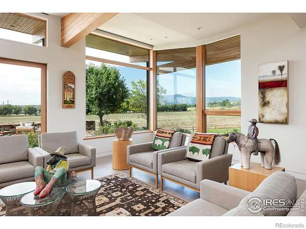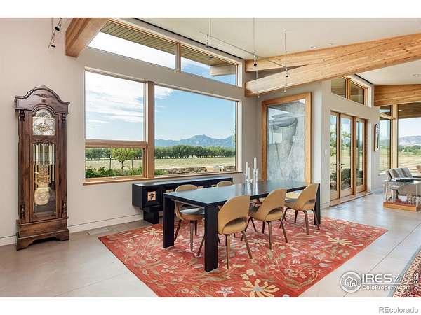 Unparalleled. Shanidiin Farm is a rare 40-acre sanctuary offering the ultimate in privacy, views, understated elegance, and sustainable design-all just 10 minutes from downtown Boulder. Named for the Navajo word meaning "ray of light," the estate lives up to its name in every detail. Thoughtfully oriented and masterfully designed, the home captures light, filling interiors with warmth while framing sweeping views of the Flatirons and back range. Bordering Open Space, the property feels infinite, a private world of its own where land, sky, and architecture converge. Designed by Gettliffe Architecture and brought to life by master builder Harrington Stanko, Shanidiin Farm is a triumph of detail and intention. Walls of windows dissolve the boundaries between indoors and out, while polished concrete floors, soaring ceilings, and natural finishes create an atmosphere both grounded and radiant. No element of comfort or sustainability has been overlooked. Geothermal and solar systems, radiant floor heating, and central air conditioning ensure year-round efficiency and ease. Luxurious guest suites, each with en suite bath, provide privacy and comfort. Every aspect of construction reflects an unparalleled commitment to quality, from the placement of windows that capture morning light to the seamless integration of high-performance systems.The property also includes 96 shares of North Boulder Farmer's Ditch and cisterns providing 35,000-gallons of water storage for abundant irrigation. A substantial recreation "studio" offers endless possibilities be it world-class gym, spa, conference space, or creative retreat-complete with sauna and steam shower. Car collectors will value space for a 6-car garage with ATV compatibility. Evenings shine around the cowboy cauldron, perfect for campfires, stargazing, and creating memories. Shanidiin Farm is a generational sanctuary and modern work of art, unlike anything else in Boulder. LIVE BOLDER, LOVE BOULDER!