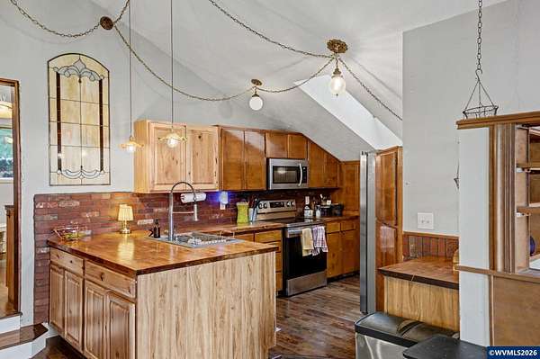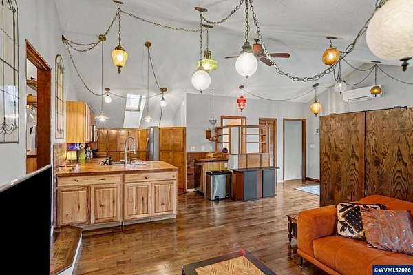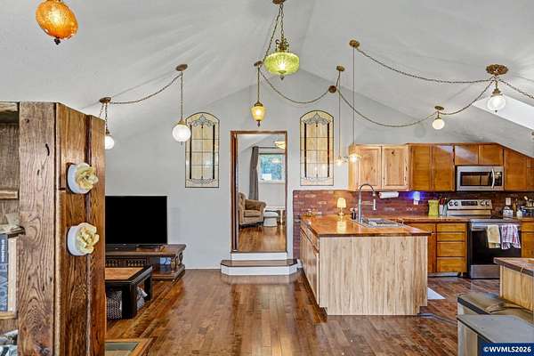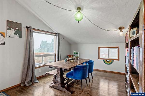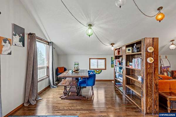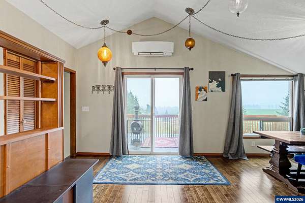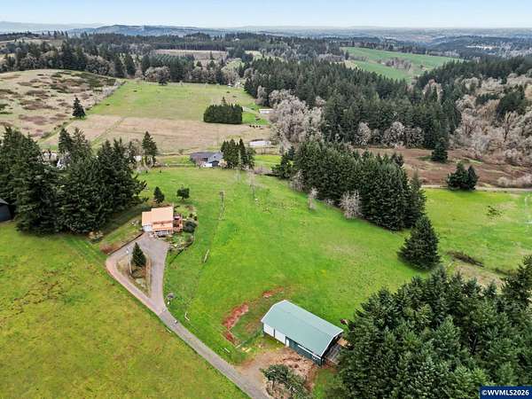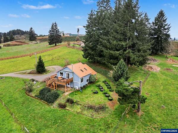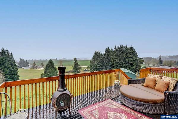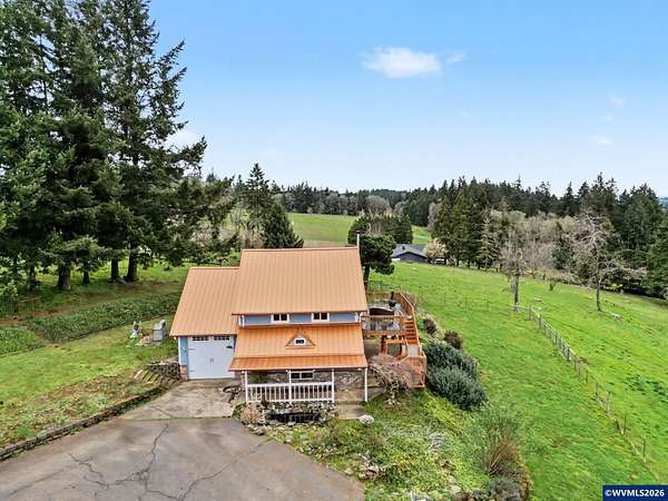 Est $3,765/moEmbrace the opportunity to own 5.55 acres in this highly sought after area of South Salem. This tranquil property includes two tax lots which include a 3 bedroom, two bath home and a 2,396 sq. ft. multi-use barn. A cozy wood burning stove welcomes you in to the home on the lower level which also includes two bedrooms, remodeled bath and a bonus room. Upstairs you'll find a great room and dining room with hevea wood floors and faulted ceilings. Enjoy a view of Mt. Jefferson from the newly rebuilt deck. New metal roof installed in 2024, heat pumps and wood stove installed in 2023.