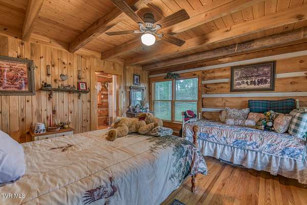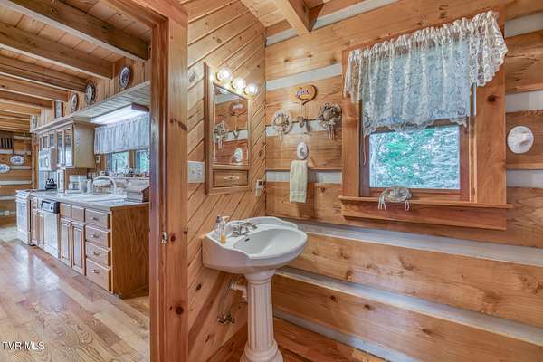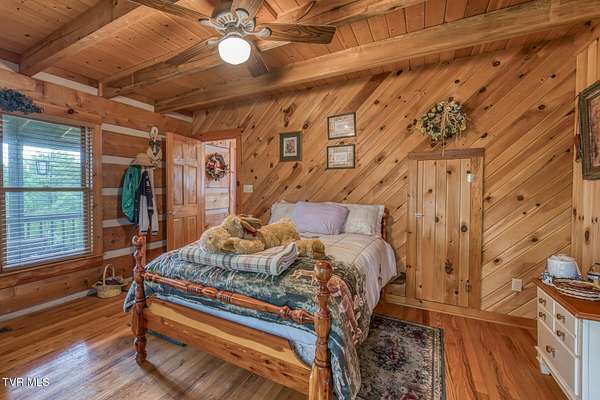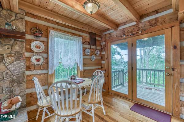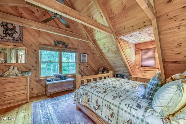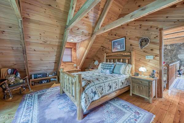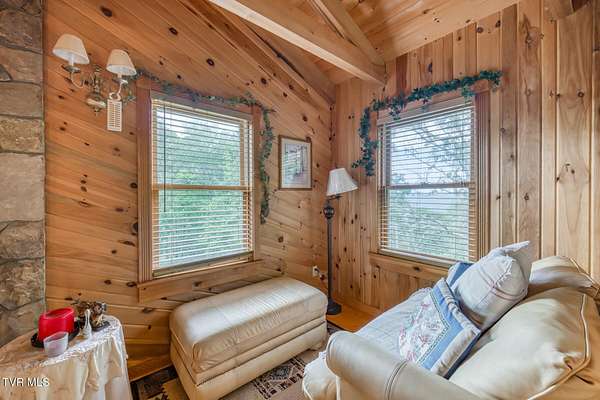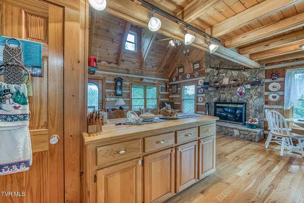 True log cabin built with western cedar logs located in Callalantee Mountain Resort and is situated on 3.54 acres! This nice two bedroom, two bath cabin offers plenty of privacy and has mountain Views! The cabin has a beautiful stone fireplace that is the focal point of the large living room. The living room has a cathedral ceiling and is very inviting. The living room is also open to the kitchen and dining room. The cabin also offers a covered front porch and a covered back porch. The primary bedroom and bath are located on the main floor, while a guest bedroom and loft is located upstairs. The unfinished basement has a wood stove and it would be great for storage or for a workshop. This cabin would make a great get-a-way or make a great primary residence. Come sit on the covered porch and enjoy the East Tennessee mountains!