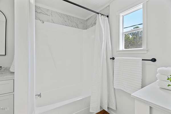 - Bathtub/Shower Combination, Breakfast Bar, Built-In Features, Ceiling Fan(s), Kitchen Island, Pantry, Primary Downstairs, Quartz Counters, Smart Thermostat, Walk-In Closet(s)