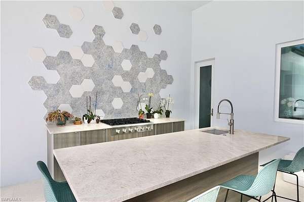 Step outside to your own private oasis--complete with a fully equipped outdoor kitchen, a large pool with spa, and a spacious pool deck perfect for entertaining or relaxing under the Florida sun.