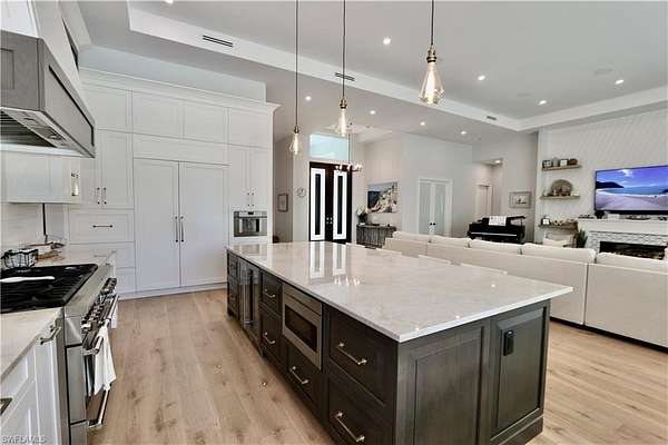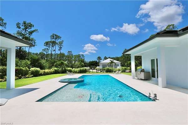 Spacious Livingston Woods Estate Welcome to this stunning 4-bedroom + office residence situated on 2.5 acres in the highly desirable Livingston Woods neighborhood. Designed with comfort and functionality in mind, this home offers a bright open layout, tall ceilings, and impact-resistant windows that flood the interior with natural light. Large walk-in closets, custom cabinets, quartz and quartzite, gas heated pool, gas stove, gas water heather. The expansive living areas feature warm wood flooring, while the bathrooms are elegantly finished with tile. A generous laundry room and a versatile utility/mud room add everyday convenience. The oversized 3-car attached garage provides ample storage and easy access. Step outside to your own private oasis-complete with a fully equipped outdoor kitchen, a large pool with spa, and a spacious pool deck perfect for entertaining or relaxing under the Florida sun. Outdoors, the property boasts a beautifully landscaped and fully cleared lot, creating a serene retreat just minutes from shopping, dining, and the world-renowned Naples beaches. A true highlight of this estate is the detached 3,500 sq. ft. air-conditioned boathouse/garage-a rare find with four large roll-up doors, high ceilings, abundant natural light, and endless possibilities for storage, hobbies, or a workshop. Whether you're seeking privacy, space, or a place to store your boat, cars, or toys, this property combines it all in one exceptional package.