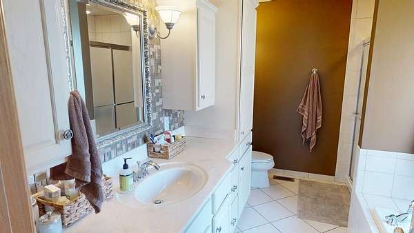 - Breakfast Bar, Ceiling Fan(s), Ceiling-Tray, Ceilings-Vaulted, Closet(s) Walk-In, Countertops-Solid Surf, Dishwasher, Disposal, Dryer Hook Up Electric, Formal Dining Room, Foyer Entry, Kitchen Exhaust Hood, Landscaped, Main Floor Laundry, Main Level Bedroom Suite, Open Floor Plan, Patio Open, Porch Covered, Range-Gas, Range/Oven HK Up Gas/Elec, Refrigerator, Skylight(s), Stand Up Shower, Sump Pump, Tub and Separate Shower, Tub/Shower Combination, Utility Sink, Washer Hook-Up
