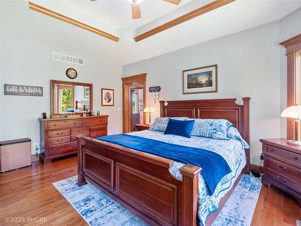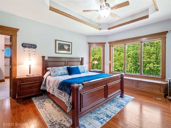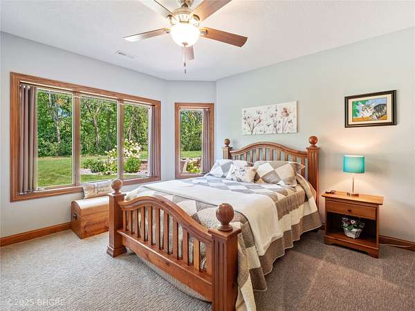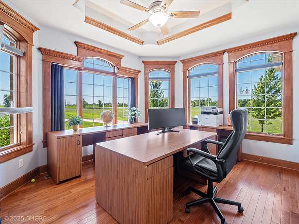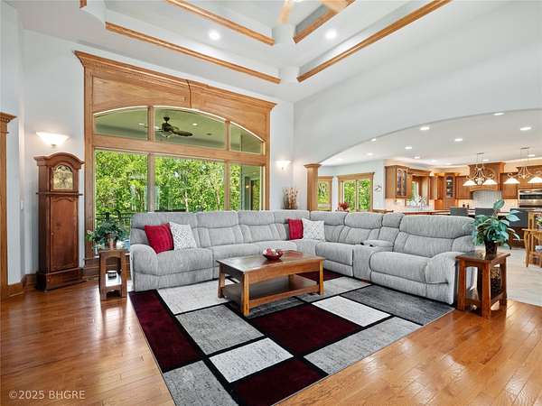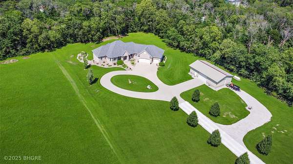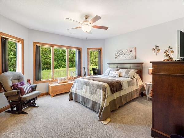 As you arrive at this tree-lined estate, you're welcomed to a breathtaking ranch retreat nestled on 9.125 acres of serene privacy. With over 4,500 sq ft of luxurious finish, a walkout lower level, and a 30x50 Morton building with power and concrete floors-ideal for a workshop, toy storage, or entertaining-this home has it all. Inside, 14-ft ceilings, custom-milled woodwork, and walls of glass frame panoramic views of the wooded backdrop. The open-concept main level features a chef's kitchen with high-end stainless appliances, oversized island, and walk-in pantry. The primary suite offers a spa-like bath with tiled shower, dual vanities, huge walk-in closet, and laundry access. A main-level office or guest room adds flexibility. Walkout lower level includes 3 bedrooms, full bath, gym/media room, and covered patio with spa hookup. Extras: whole-house generator, water filtration system, 5-acre hay field, 1-acre apple orchard, ag zoning, and potential to subdivide up to 3 more homes. Certified Pre-Owned with inspection + 13-month HWA Platinum warranty.