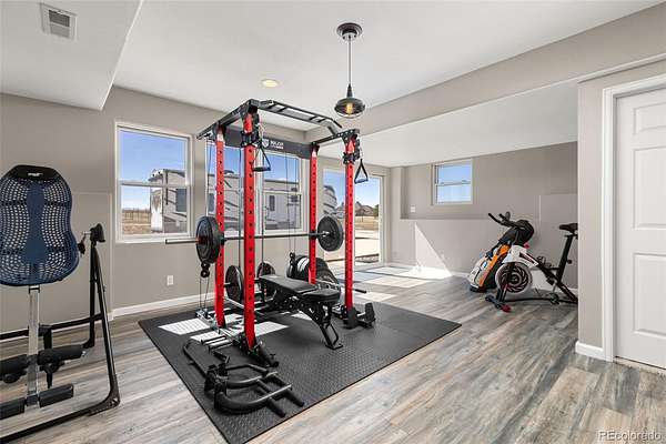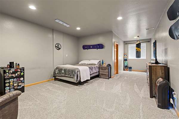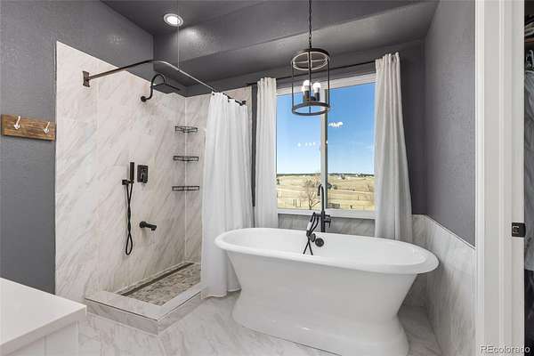 Versatile floor plan for office, gym, guests. The main floor primary suite is a luxurious retreat, complete with a walk-in closet and a spa-like ensuite bathroom offering double sinks, separate vanities, a soaking tub, and a separate shower. The upper level flex space can be used as bedroom, craft room, workspace, or whatever your heart desires. Additional bedrooms in the fully finished walk-out basement. NEW class IV roof, new gutters, new trim paint. Newer HVAC, and windows.