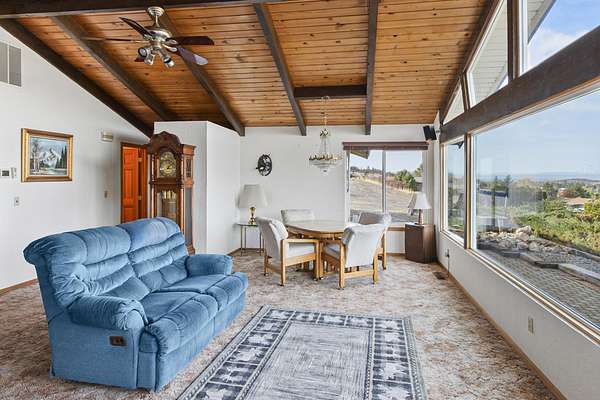 This is the perfect setup for living, working, and creating--all in one place. This irrigated, 2.32-acre property has panoramic views of the Cascade Mountains and valley with plenty of room to grow. The 24x36 insulated, climate-controlled shop is ready for your business or projects, with two 200-amp panels, multiple workrooms, offices, a bathroom, and a loft living area. Also part of the shop is a 480 sf stable. The updated home features vaulted living spaces, a sunroom, and large redwood deck with amazing views. The remodeled kitchen has hickory cabinets, granite counters, new stainless appliances, and walk-in pantry. Bathrooms are refreshed with new cabinets, granite counters. The flexible, fully insulated media room can also work as an office, guest room, or suite. A big laundry/mudroom adds storage and workspace. 15 years remain on the roof warranty; heat pump was installed 2/22. SOLD AS ISThis is a rare chance to build your lifestyle and business in one peaceful spot