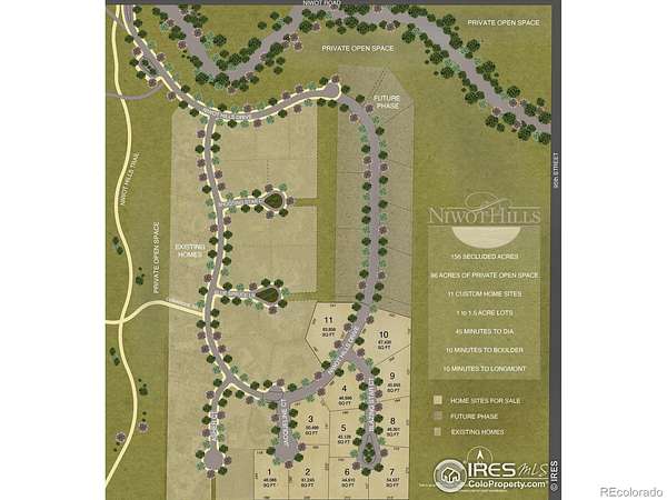 Est $4,473/moBuild your custom dream home in the tranquil setting of upscale Niwot Hills. Surrounded by 86 acres of protected open space and views of the majestic Continental Divide, all parcels are at least an acre. Charming Niwot Village is only minutes away via the Niwot Trails walking path and features noteworthy eateries, gift shops, and craft brew pubs. Niwot takes pride in its friendly community atmosphere like First Friday Art Walks, the Rock & Rails summer concert series and the annual Holiday Parade. Design Build with Markel Homes or bring your own local builder. Limited-time seller incentive--contact agent for details.
