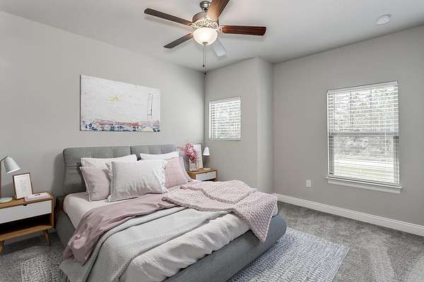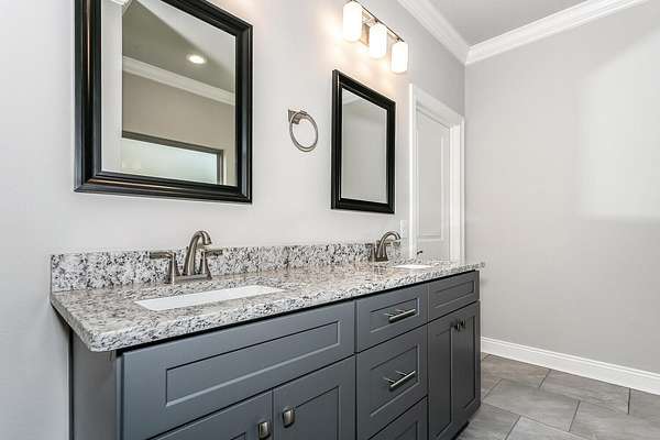 Exceptional new home, located in an X Flood Zone, with many upgrades throughout. Clad with the durability of cement fiber board, brick accents, and an architectural shingled roof. Sprinkler system and fenced backyard comes standard! Interior offers luxury vinyl plank flooring in the first-floor common areas, visually pleasing neutral tile in the baths and laundry room, and carpet in the bedrooms. Custom paint color is accented with a wide baseboard, beautiful crown molding, and a tray ceiling in the master bedroom. Stainless steel appliances including refrigerator, stunning shaker style cabinets, and granite throughout finish the home exquisitely.