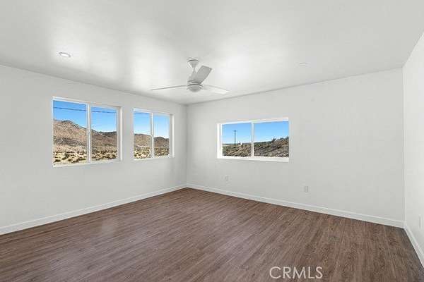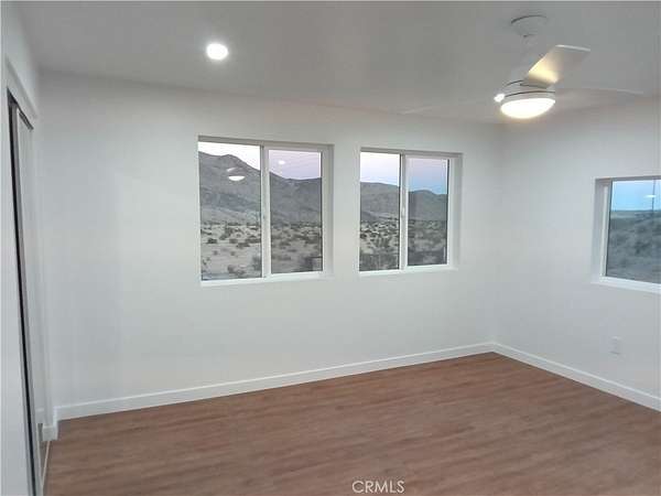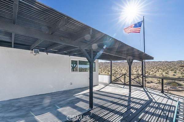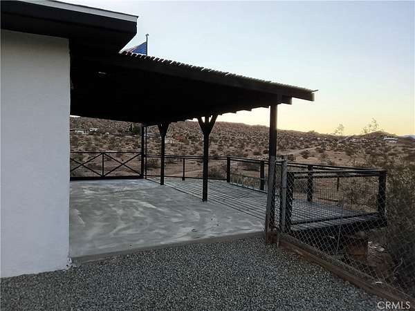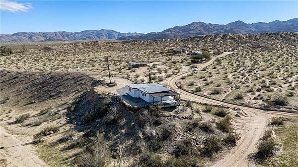 Welcome to a rare desert gem on 5+ acres in Twentynine Palms offering panoramic mountain views and boundless possibilities. This single-story ranch-style home features 2 bedrooms and 1 bathroom with a functional layout, tile flooring throughout, and plenty of natural light. Enjoy classic desert living with a spacious yard, tranquil setting, and a private view deck -- perfect for stargazing and sunset gatherings. Ideal for investors, creatives, or those dreaming of a serene getaway close to Joshua Tree National Park. No HOA and abundant room for expansion, RV parking, outdoor projects, or accessory buildings. Discover desert living with space to roam and room to reimagine. This home is accessed via a quiet unpaved road enhancing the property's privacy and authentic high-desert feel.