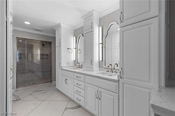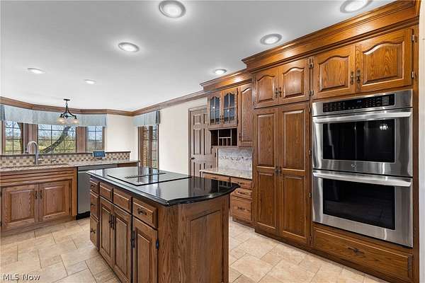 Welcome to 66985 Vista Dr, where timeless elegance and modern luxury blend together seamlessly. Experience elevated living in this stunning brick ranch home that shines bright with owner pride, situated on over 7 acres just outside of town. From the moment you step inside, you'll notice the attention to detail-from crown molding and cathedral ceilings to custom finishes throughout. Here, you have true single-story living with three bedrooms, two beautifully renovated bathrooms, main floor laundry, a formal dining area, sunroom to enjoy, and an attached two-car garage. The kitchen serves as the heart of the home with granite countertops, Schrock custom cabinetry with pull-out storage, updated appliances including a double oven, an island with cooktop, and a breakfast nook-perfect for gathering and everyday living. The primary suite provides a true retreat, highlighted by custom Shutler built-ins, stylish finishes, and a spa-like bathroom complete with heated tile floors, a backlit soaking tub, and a luxurious two-person shower with steam feature. The guest bathroom continues the elevated feel with its own modern updates and heated flooring, offering comfort for family and visitors alike. The basement offers a perfect blend of finished space and future potential, starting with newly installed solid wood stairs that lead you down. A spacious rec room with a sliding glass door creates a bright and inviting area for relaxing or entertaining, complemented by new flooring and a refreshed drop ceiling. A versatile bonus room provides the flexibility to serve as a guest room, home office, or hobby space. You'll also find a convenient half bath with room to add a shower if desired. Beyond that, ample unfinished space offers excellent storage and endless opportunities to expand your living area to fit your needs. The property is completed by an aluminum fence and expansive acreage to enjoy, offering both privacy and room to roam. This one is truly a must-see!