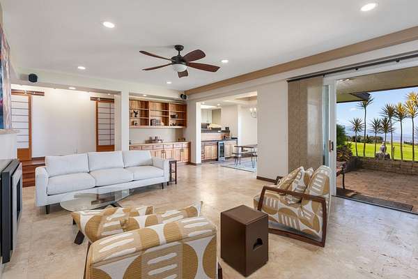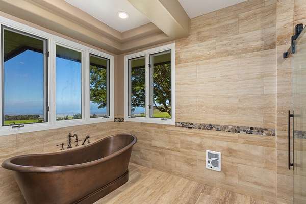 Fully renovated custom home on 20 acres in Hawai'i's prestigious eqestrian community with views of Mauna Kea, Kohala mountains, Waimea, Maui and the ocean. Residence is 2,772 sf with 3 bedrooms, one of which is being used as an office, workout room, 2.5 baths and 3 car garage. The gourmet kichen includes GE Cafe appliances, granite countertops, custom Hawaiian mahogany island and Hawaiian Koa cabinetry. Bathrooms have river rock finishes, two 6' copper soaking tubs and premium fixtures. Acacia wood and travertine flooring thoughout. Three car attached garage. Photovoltac system (leased) for energy efficiency. Land and gardens: 6 terraced planting beds for organic gardening, avocado, orange, lemon and lime trees. Three custom waterfalls set within lush, manicured landscaping. is HOA website. Waiki'i Ranch amenities include: Recreational building with weights, aerobic machines, racket ball courts and separate his/her locker rooms with saunas Community herb garden Community building with party kitchen, fireplace, tv room with large flat screen TV and cable Private apartment at the clubhouse for use by homeowners and their guests Shared dedicated corridors for walking and horseback riding of apx.12 miles Polo field, roping and barrel racing arena Private water source