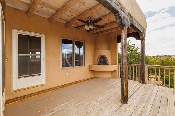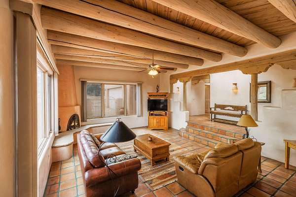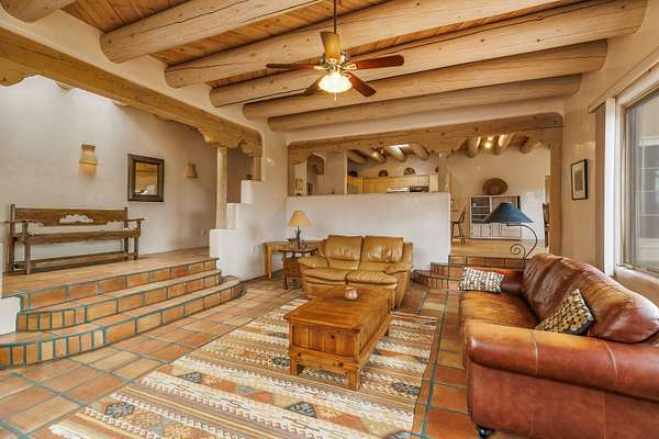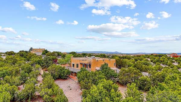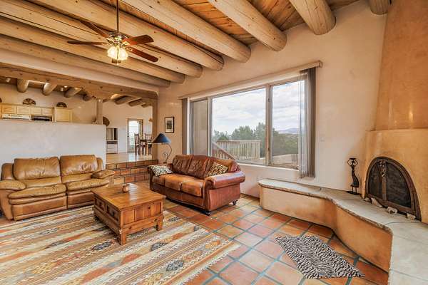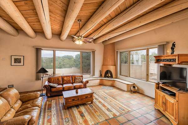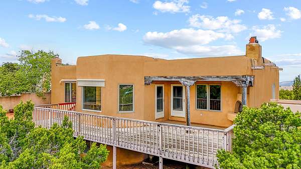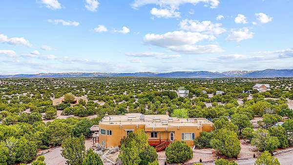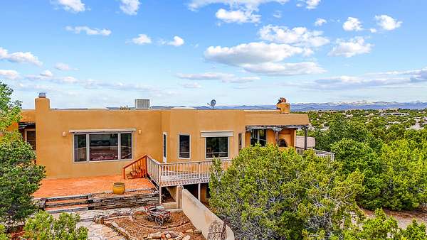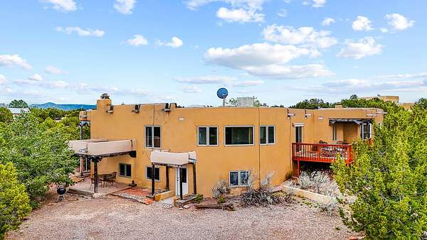 Prime investment opportunity just minutes from the Santa Fe Plaza! This property offers two fully independent living spaces: a 2,908 sq.ft. custom main home and a BONUS 1,405 sq.ft. 2BD/1BA unit with separate address, entrance, electric, and parking--ideal for rental income, Airbnb, or long-term tenants. Situated on 1.64 acres near Las Campanas with no HOA, the main home features skylights, diamond plaster walls, vigas, 3 interior kiva fireplaces, and an exterior kiva off the ensuite deck. Ample parking, oversized 2-car garage, and private road access enhance functionality and appeal.