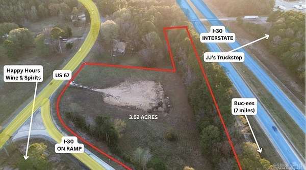 Prime 3.52 Acres Commercial Land | Exceptional Visibility on I-30 & Hwy 67. Unlock the potential of this 3.52 acre premier commercial tract, strategically positioned with outstanding frontage along both Interstate 30 and Highway 67. Offering unparalleled visibility and accessibility, this property presents a rare opportunity for developers, investors, or business owners seeking a high-impact location. Flat, usable acreage ideal for a wide range of commercial, retail, or service-oriented development. Immediate access and exceptional exposure along two major thoroughfares. Interstate 30 boasts over 63,000 vehicles per day, providing continuous visibility and strong customer reach. Positioned in a growing corridor with increasing commercial demand and strong regional connectivity. This property combines size, access, and visibility--making it one of the most desirable commercial opportunities in the area. Ideal for any business looking for maximum exposure and long-term growth potential.