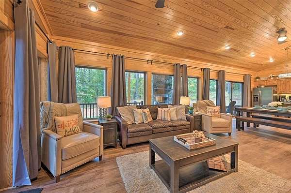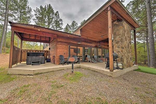 MOTIVATED SELLER! SELLER IS WILLING TO PAY NEGOTIATED CONCESSIONS. 'Nature Resides' - Private & Secluded Woodlands: Escape to nearly 2 ACRES of serene forest near Broken Bow and Beavers Bend State Park. LOCATION, LOCATION, LOCATION: Conveniently close and within walking distance of popular shops and restaurants on Lukfata Trail, yet tucked away from busy town traffic and secluded on nearly 2 acres! Enjoy the option to walk to nearby attractions if you love a brisk stroll! Features two master bedrooms, a cozy loft upstairs for additional sleeping space, and two full bathrooms. Enjoy the patio with a hot tub, perfect for unwinding after exploring Broken Bow's scenic trails. Includes a fireplace and a fire pit, ideal for roasting marshmallows under the stars. Equipped with gas and charcoal grills for BBQ enthusiasts. Putting Green Fun: Practice your short game surrounded by nature. Lake Adventures Await: Only 6 miles from Broken Bow Lake -- bring your boat or rent one nearby! Unforgettable Evenings: End your day around the fire pit, sharing stories and making memories with loved ones. With a driveway that can accommodate 6+ vehicles and boat/trailer parking, this property is perfect for a serene retreat or a profitable vacation rental. Sleeps 8 plus guests. This modern vacation rental in Broken Bow combines proximity to adventure, nature, and convenience for an unforgettable getaway! For a walk through video of this cabin, please reach out to the listing agent.