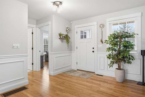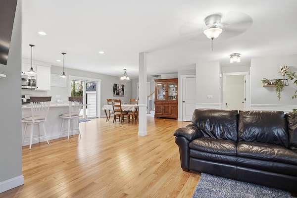 Welcome to this stunning home nestled on over 6 acres, offering a perfect blend of modern amenities and spacious living. The open-concept first floor features a beautiful kitchen with white cabinets, stainless steel appliances, and silestone counters, complemented by a walk-in pantry for ample storage. The kitchen seamlessly flows into the dining room and living room, where you'll find a cozy gas fireplace and all hardwood floors throughout. A first floor home office or den provides flexibility for remote work or relaxation. Upstairs, all hardwood floors continue, showcasing the primary bedroom with an ensuite bathroom and two walk-in closets. The additional bedrooms are generously sized, with one offering the potential to serve as a bonus room. The basement presents an opportunity to finish for extra living space and includes a walk-up dogshed for convenient access. Enjoy the convenience of a 2-car attached garage, central air, a whole-house automatic generator, and a shed for extra storage. The exterior boasts a gorgeous, level backyard with a patio and firepit area, ideal for entertaining or enjoying the outdoors. There’s plenty of room to explore the expansive acreage. Starting this fall, students will have the choice between Epping High School and Pinkerton Academy. This home is situated in a great location with easy access to shopping, restaurants, and highways, making it perfect for those seeking both comfort and convenience.