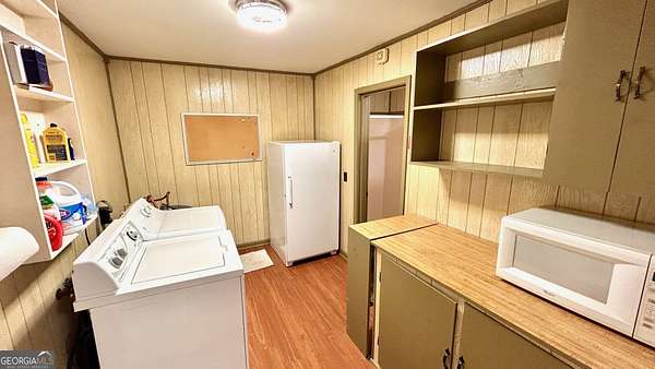 Searching for a home that truly offers more? This 2.05-acre private retreat features two separate living spaces, extensive outbuildings, and beautifully landscaped grounds. The Main Residence: This charming 2BR/2BA home combines classic comfort with modern updates. Enjoy hardwood floors throughout and a freshly remodeled bathroom. The heart of the home is a spacious family room anchored by a cozy fireplace, leading into a large eat-in kitchen fully equipped with a stove, dishwasher, microwave, and refrigerator. A dedicated laundry room includes a washer, dryer, and an extra freezer for convenience. The Guest House Located privately behind the main home is a 2BR/1BA mobile home featuring a large, screened-in front porch-ideal for rental income, multi-generational living, or a home office. Outdoor Features & Outbuildings Set on over two acres of lush lawn and mature landscaping, this property is a hobbyist's dream: Large Workshop with power. Massive Barn/Garage for cars, boats, or tractors. Detached Screened Porch with a swing for peaceful afternoons. Potting Shed and additional storage building with power as well. Experience total privacy without sacrificing convenience. Easy to show-schedule your tour today!