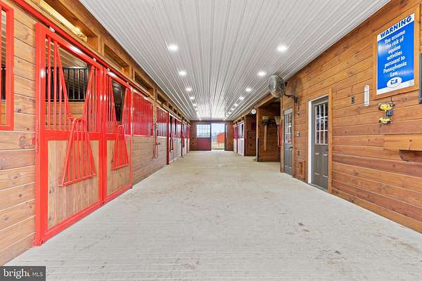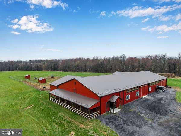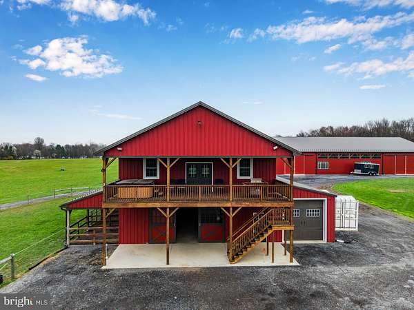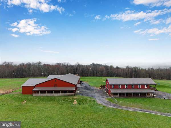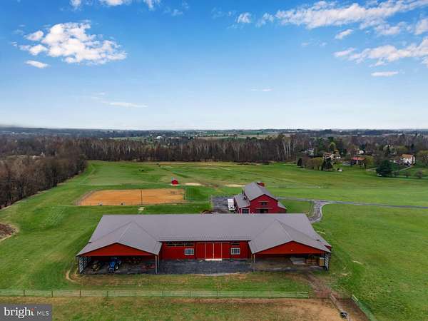 Exceptional equestrian property set on approximately 50 acres with two pole buildings. Thoughtfully designed with purpose and functionality in mind, this property features numerous custom finishes throughout. Building One: 40x84 with two stories, including a 1,800 sq ft barndominium with a covered porch facing west-perfect for relaxing while watching the sun set over the pastures. The living area features 2 large bedrooms, 2 full baths, and one half bath, enhanced by luxury finishes such as vaulted ceilings, a custom kitchen with granite countertops, and LVP flooring. The second story also includes a loft for additional hay storage. The ground floor barn area offers a 12-foot-wide aisleway, 6 stalls (5 with attached daylight runs), heated tack and utility rooms, a wash stall, and a sawdust bay. Also attached is an 18x70 garage addition with overhead doors at each end. Building Two: 72x200 featuring a 72x120 indoor riding arena with sand footing over stone dust, a viewing area, 8 stalls (6 with attached daylight runs), a 14-foot aisleway, tack room, wash stall, hay storage above the stall area, and additional space for equipment storage. Outdoors there is a 110x170 outdoor arena with sand footing and premium quality lighting. Fenced pastures include two 5+/- acre pastures and two one-acre pastures, all with run-in sheds. On the west end of the property, a tree-lined area borders the Yellow Breeches Creek, while the remaining acreage has been used for hay production. Experience the perfect blend of comfort and equestrian lifestyle-schedule your private tour today and see all this incredible property has to offer!