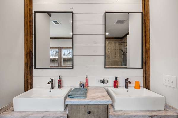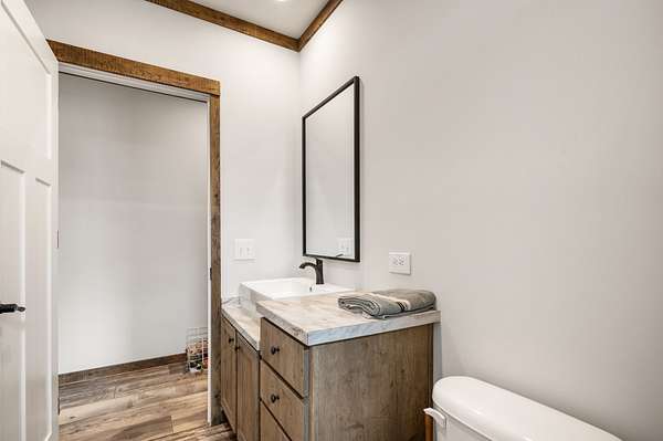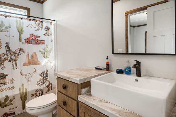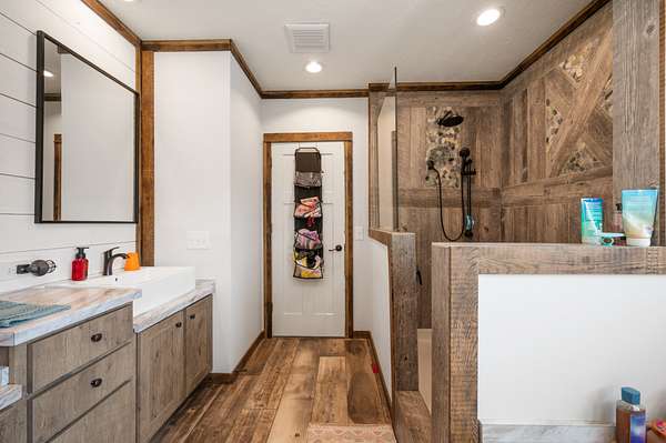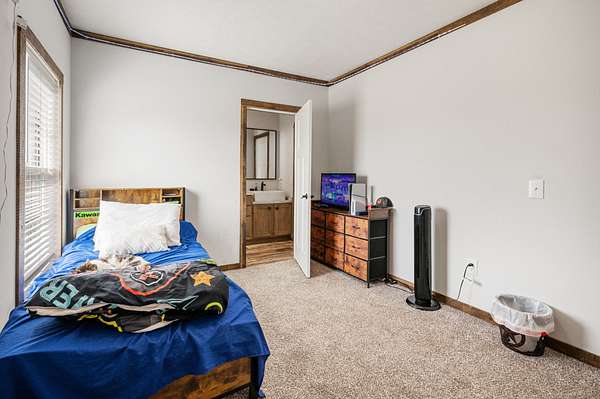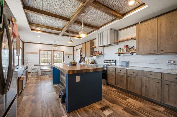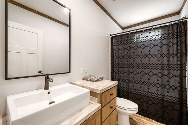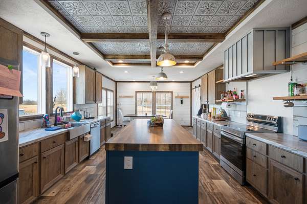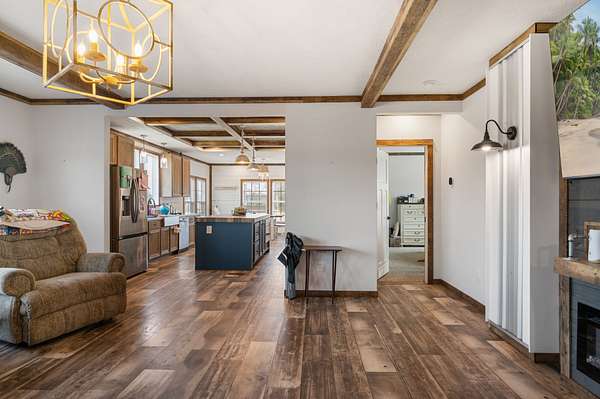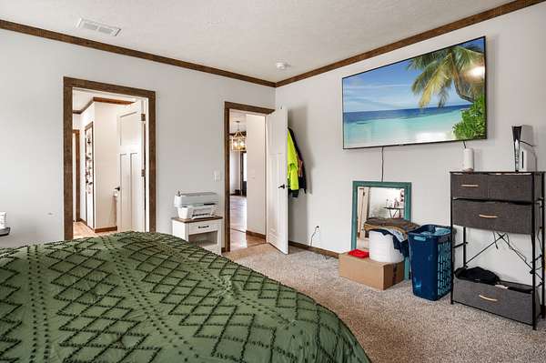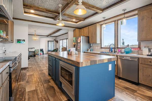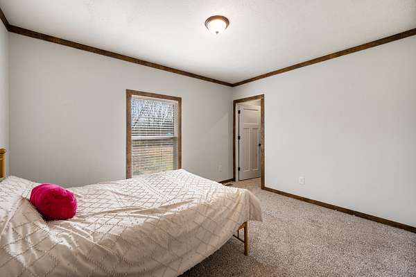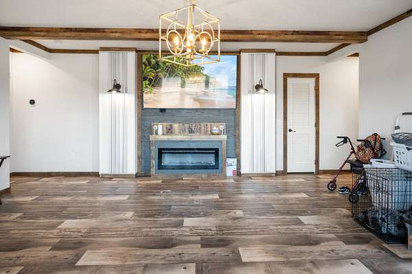 The main home is a 4-bedroom, 3-bathroom modular home on a permanent foundation featuring high ceilings, stainless steel appliances, a large kitchen island, and an oversized pantry perfect for storage and entertaining. The living room offers a cozy electric fireplace, creating a welcoming gathering space. The primary suite includes a walk-in closet and a private bathroom with double sink vanity, soaking tub, and large walk-in shower. This home also includes a transferable Clayton Homes warranty for added peace of mind. The address for this home is 65 Lackey Rd.